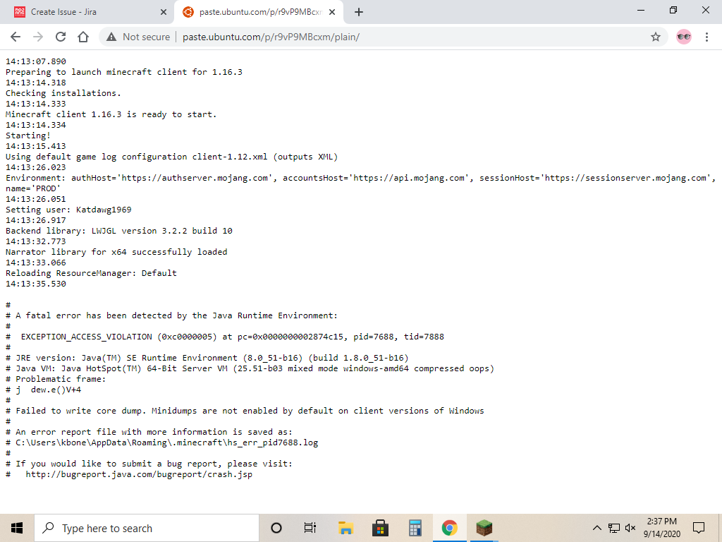 When I tried starting the game it crashed at the loading screen. I tried restartig my PC and reinstalled Minecraft.