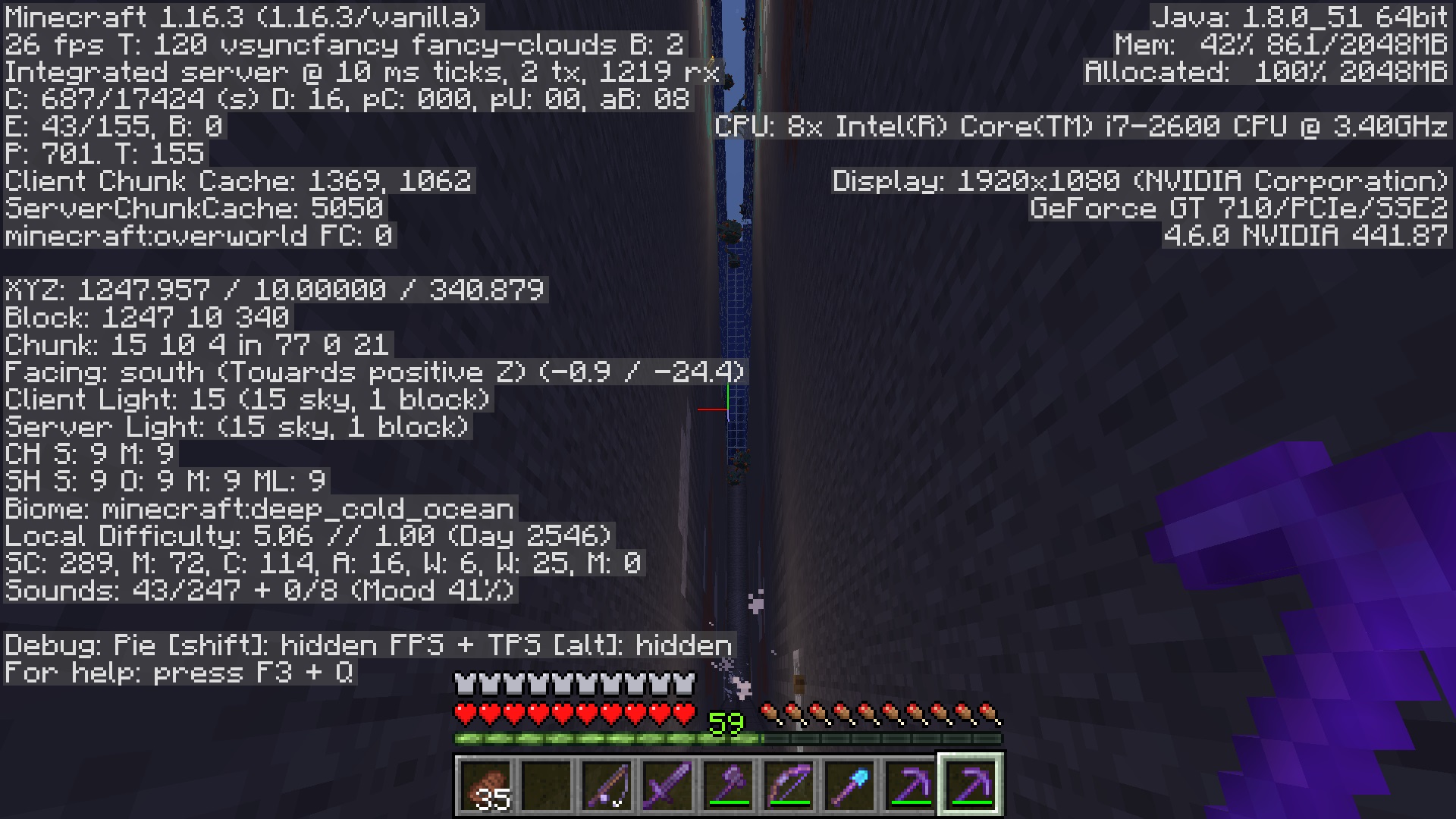 Minecraft version: Java 1.16.3, uncertain about earlier versions.