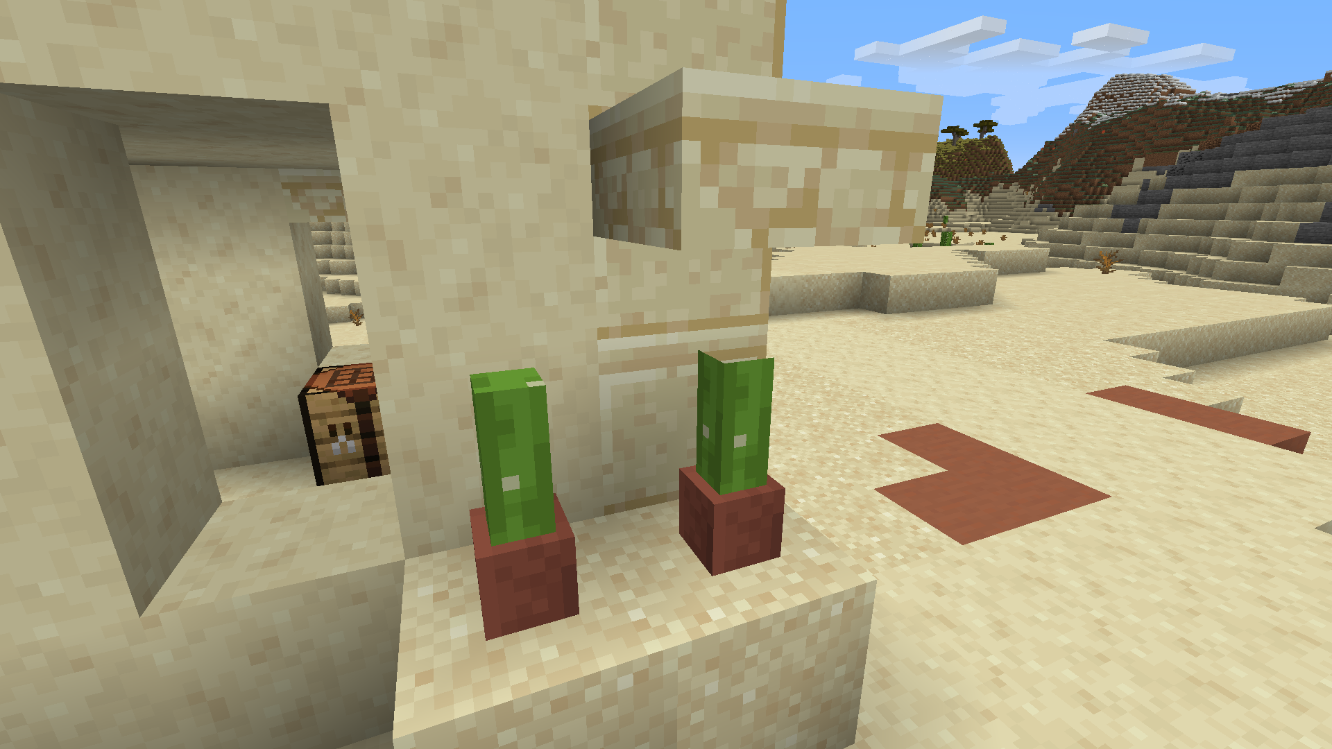 The top of the cactus texture (when in a flower pot) does not appear when there is a slab on the top half of a block above it, however it is normal if there is not a slab above it.