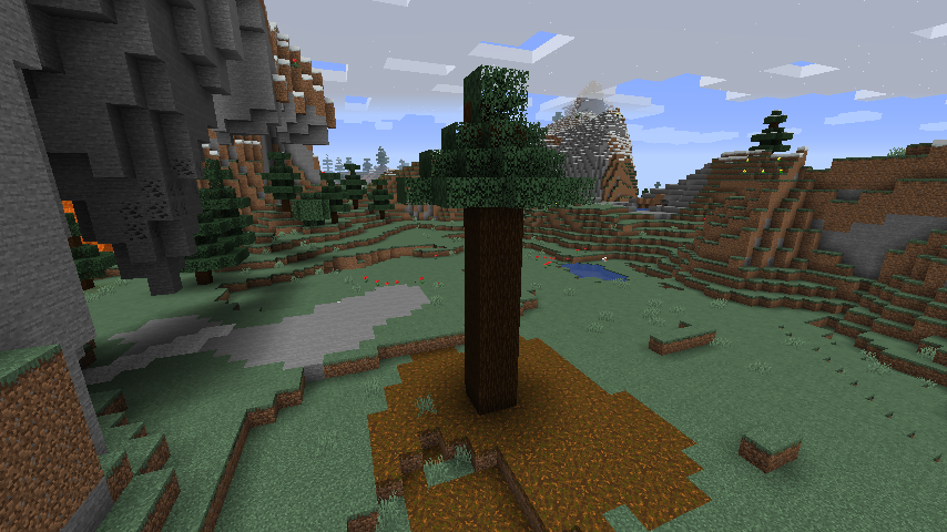 Suggested fix would be to make "spruce trees" and "pine trees" two distinct tree species, with different saplings, leaves, logs and wood products. Spruce trees would be the current conventional tree with multiple layers, and pine trees would grow with the clusters of leaves only at the top.