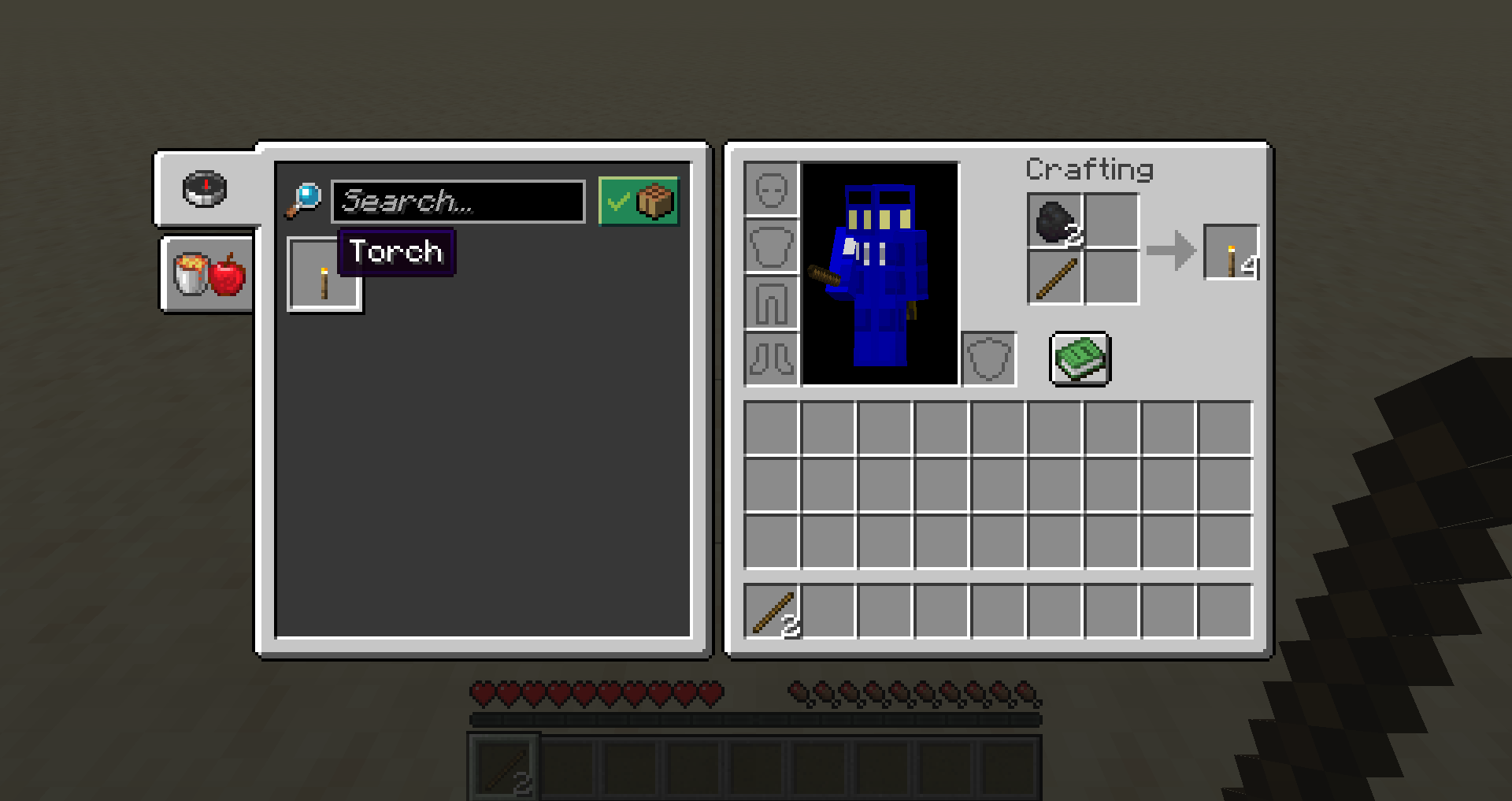 → ✔ The stick that you removed from the crafting grid is sent back into the crafting gridCompletely remove one piece of coal from your inventory: