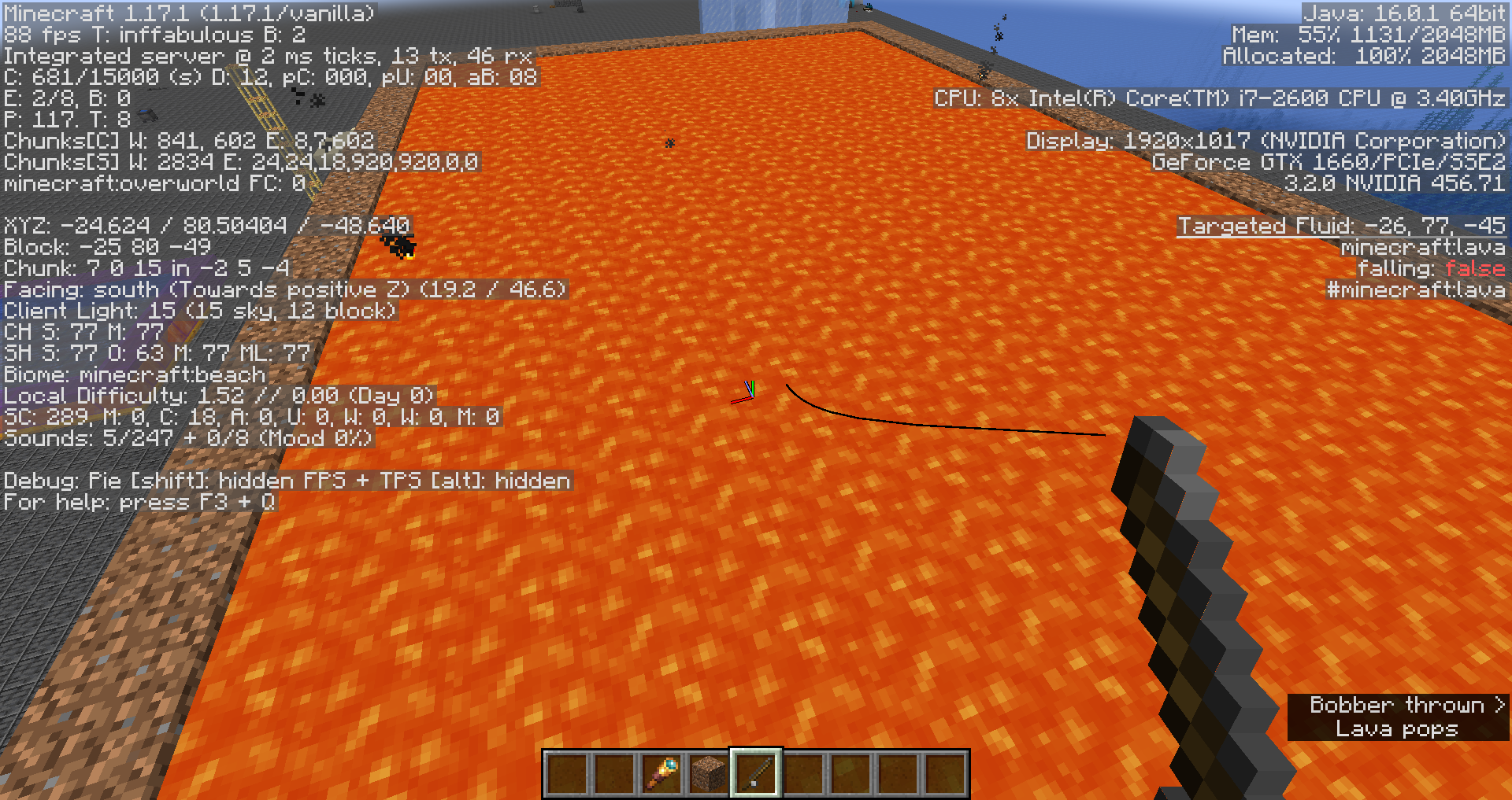 I noticed that when in lava fishing rod bobbers will retain their velocity as if they were in air when instead they should slow down slightly when in lava.