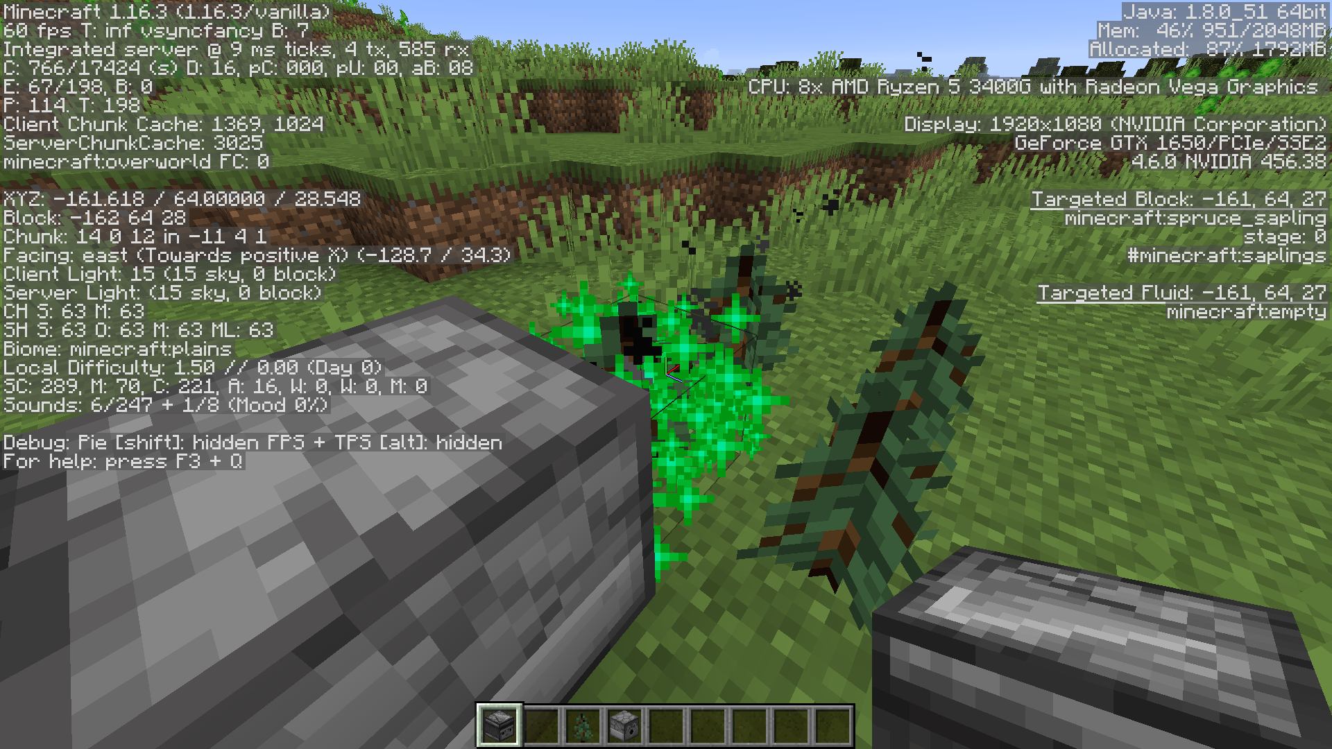 When any blocks are placed in a 3x3 area around the north-western sapling of a 2x2 spruce or jungle tree, it won't grow. this includes other saplings (even of the same type), dirt, logs, leaves, podzol, mycelium, and dispensers trying to grow the tree. in older versions, it could grow without any horizontal clearance at the sapling level, and all other trees can also grow without horizontal clearance, including dark oak. it won't even advance a single growth stage. as you can see from the screenshot, the dispenser is trying to grow the sapling and the growth stage is still 0. this dispenser has been left running for quite a while.