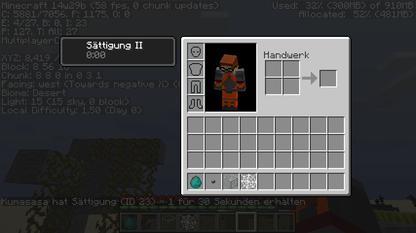 Minecraft 1.6.1, Minecraft 1.6.2, Minecraft 1.7.4, Minecraft 14w02c, Minecraft 14w03b, 86 more Minecraft 14w04a, Minecraft 14w04b, Minecraft 14w29b, Minecraft 1.8, Minecraft 1.8.1-pre3, Minecraft 1.8.8, Minecraft 15w31c, Minecraft 15w32a, Minecraft 15w44b, Minecraft 15w49b, Minecraft 16w42a, Minecraft 1.11.2, Minecraft 1.12 Pre-Release 6, Minecraft 1.12.1, Minecraft 1.12.2, Minecraft 18w16a, Minecraft 18w20a, Minecraft 18w20b, Minecraft 18w20c, Minecraft 18w22a, Minecraft 18w22b, Minecraft 18w22c, Minecraft 1.13-pre1, Minecraft 1.13-pre2, Minecraft 1.13-pre3, Minecraft 1.13-pre4, Minecraft 1.13-pre5, Minecraft 1.13-pre6, Minecraft 1.13-pre7, Minecraft 1.13-pre8, Minecraft 1.13-pre9, Minecraft 1.13-pre10, Minecraft 1.13, Minecraft 18w30a, Minecraft 18w30b, Minecraft 18w31a, Minecraft 18w32a, Minecraft 18w33a, Minecraft 1.13.1-pre1, Minecraft 1.13.1-pre2, Minecraft 1.13.1, Minecraft 1.13.2-pre1, Minecraft 1.13.2-pre2, Minecraft 1.13.2, Minecraft 18w43b, Minecraft 18w43c, Minecraft 18w44a, Minecraft 18w45a, Minecraft 18w46a, Minecraft 18w47a, Minecraft 18w47b, Minecraft 18w48a, Minecraft 18w48b, Minecraft 18w49a, Minecraft 18w50a, Minecraft 19w02a, Minecraft 19w03a, Minecraft 19w04a, Minecraft 19w04b, Minecraft 19w05a, Minecraft 19w06a, Minecraft 19w07a, Minecraft 19w08a, Minecraft 19w08b, Minecraft 19w09a, Minecraft 19w11a, Minecraft 19w11b, Minecraft 19w12a, Minecraft 19w12b, Minecraft 19w13a, Minecraft 19w13b, Minecraft 19w14a, Minecraft 19w14b, Minecraft 1.14 Pre-Release 2, Minecraft 1.14 Pre-Release 4, Minecraft 1.14 Pre-Release 5, Minecraft 1.14.2 Pre-Release 1, Minecraft 1.14.2 Pre-Release 2, Minecraft 1.14.2 Pre-Release 3, Minecraft 1.14.3 Pre-Release 1, Minecraft 1.14.3 Pre-Release 3, Minecraft 1.14.3 Pre-Release 4, Minecraft 1.14.4 Pre-Release 1, Minecraft 1.14.4 Pre-Release 4, 19w34a, 19w35a , 19w36a, 19w37a, 19w38b, 19w39a, 19w40a