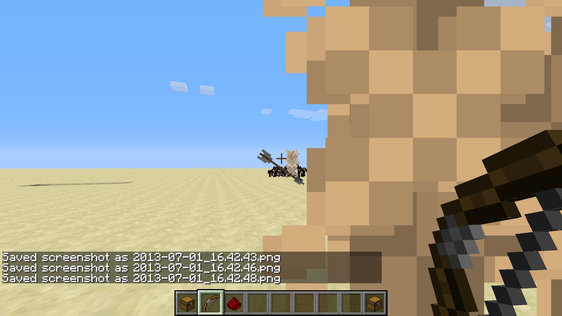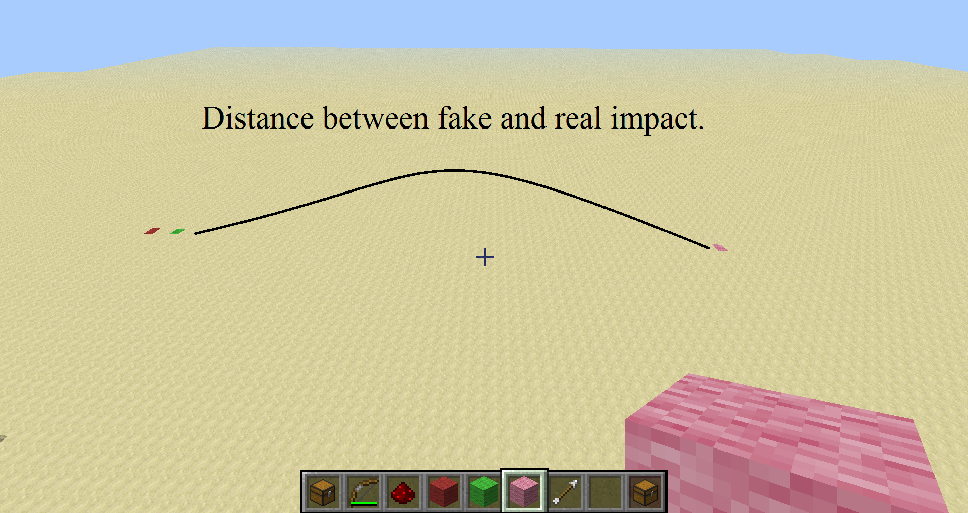 The point is that when you shoot an arrow and falls before and after the character appears to be about 30 blocks away (see screenshots). When a critical hit even 60 blocks. It's quite a serious bug, but it could cause problems on some maps.