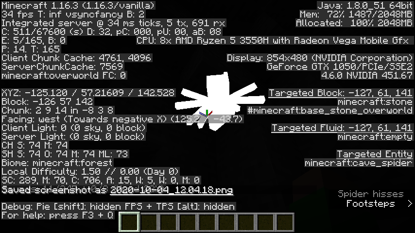 Also, as I was writing this the spider changed to a white spider, and I was in the pause menu. Spectating still doesn't work.