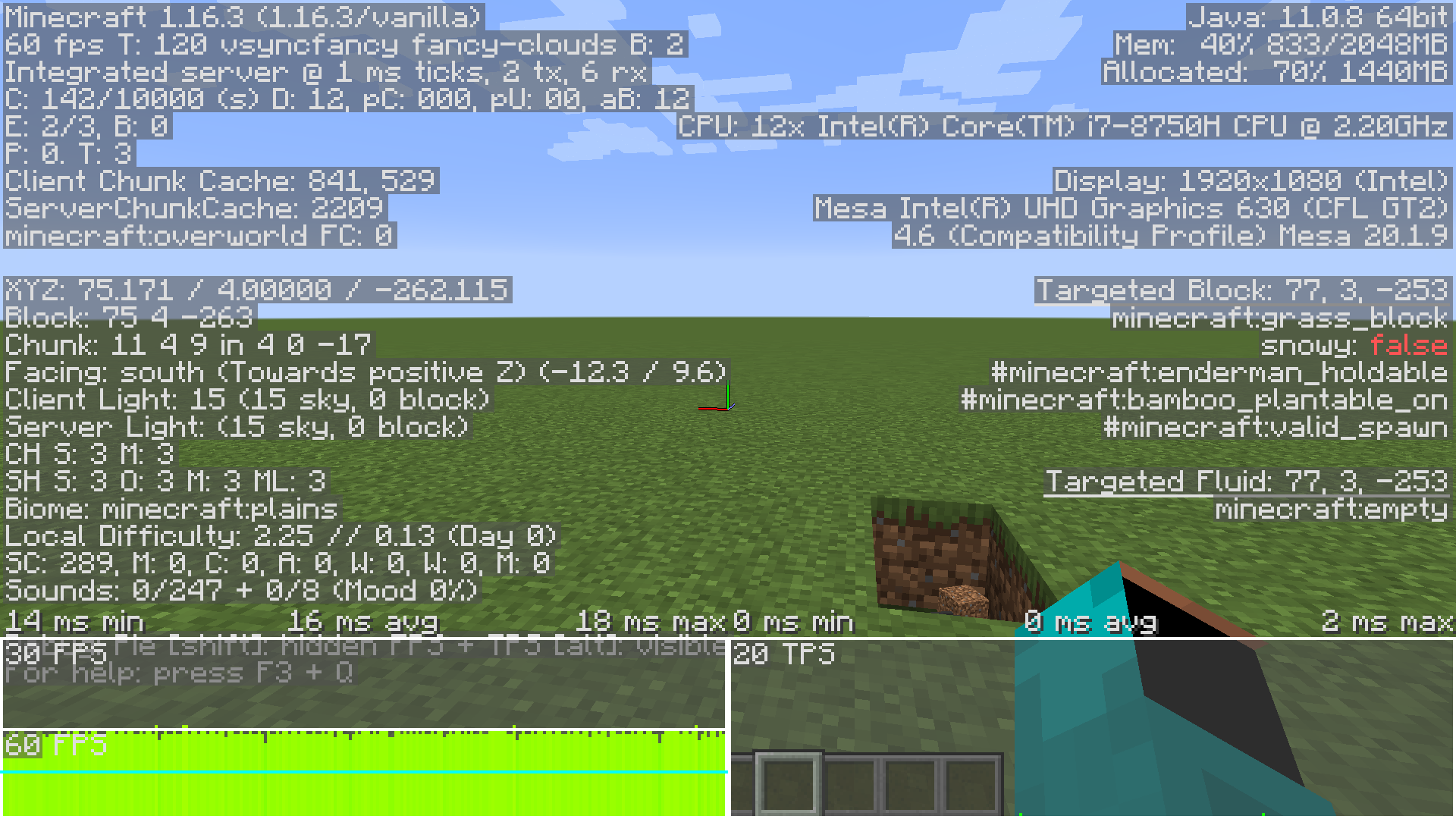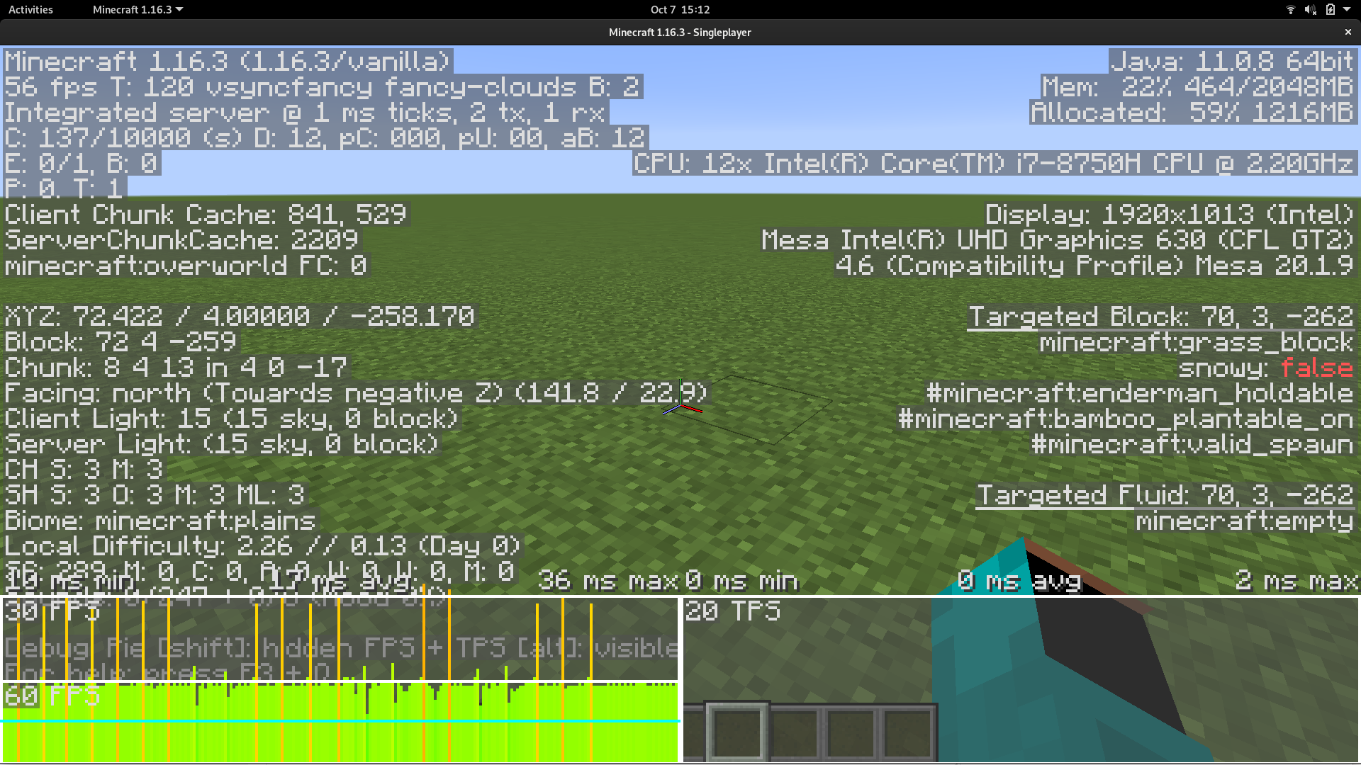 1. Join a normal world, multiplayer or singleplayer. FPS is high.