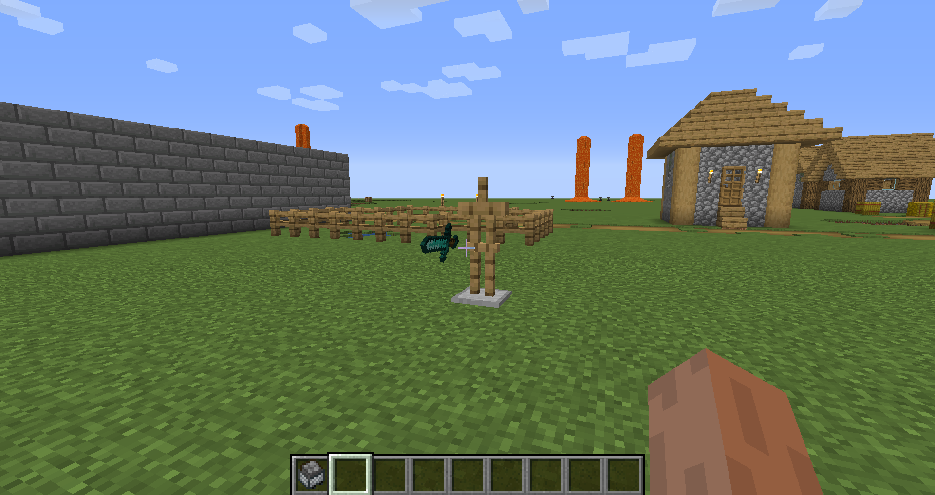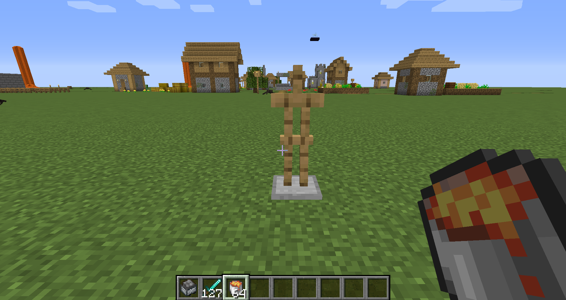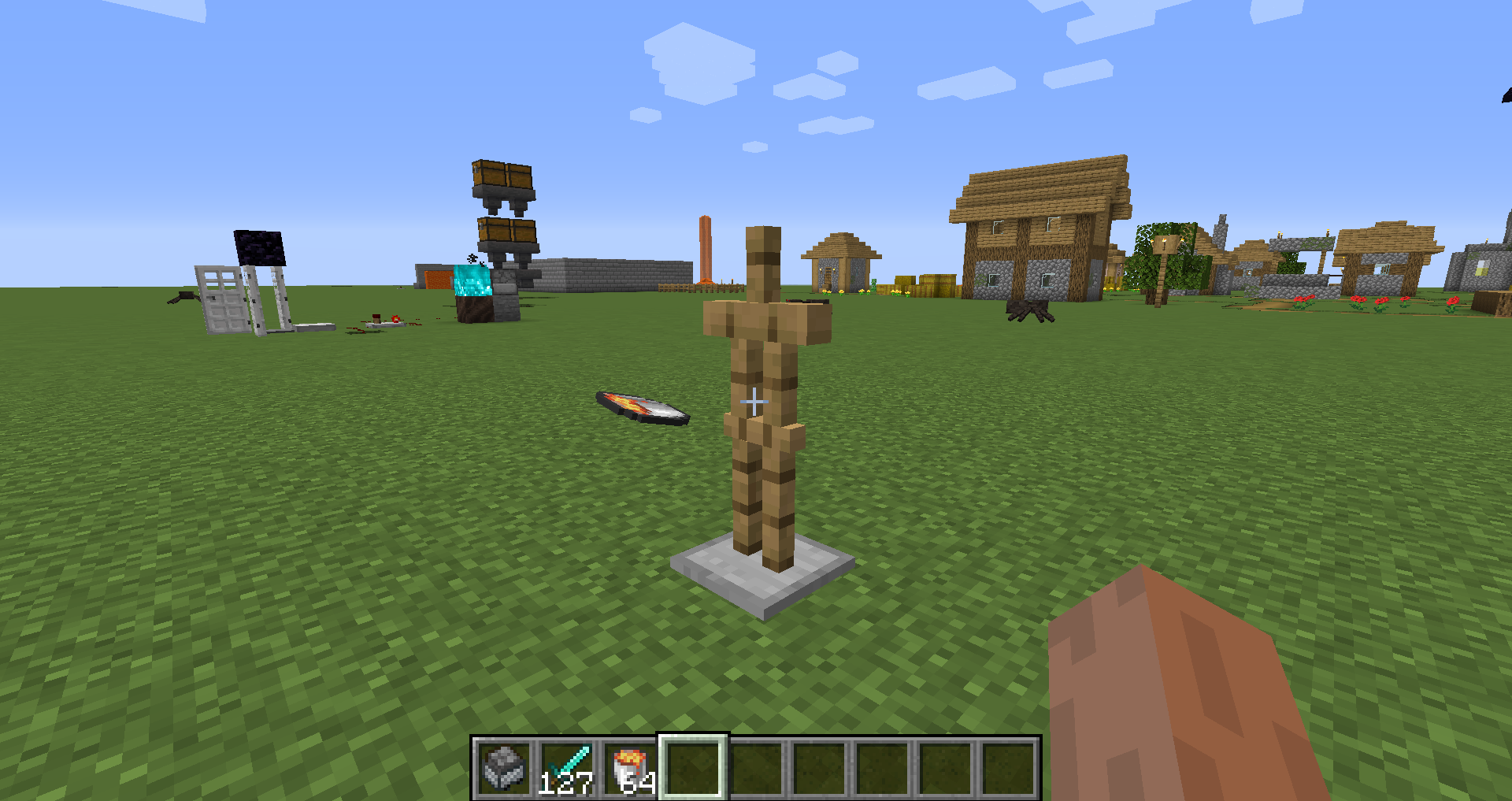 /summon minecraft:armor_stand ~ ~ ~ {HandItems:[{id:diamond_sword,Count:127b}]} /summon minecraft:armor_stand ~ ~ ~ {HandItems:[{id:lava_bucket,Count:64b}]}Right-click the armor stand item