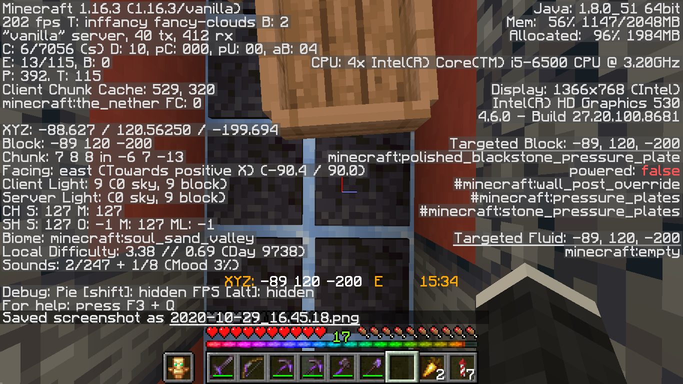 Please provide a screenshot of your game with the F3 debug screen enabled.