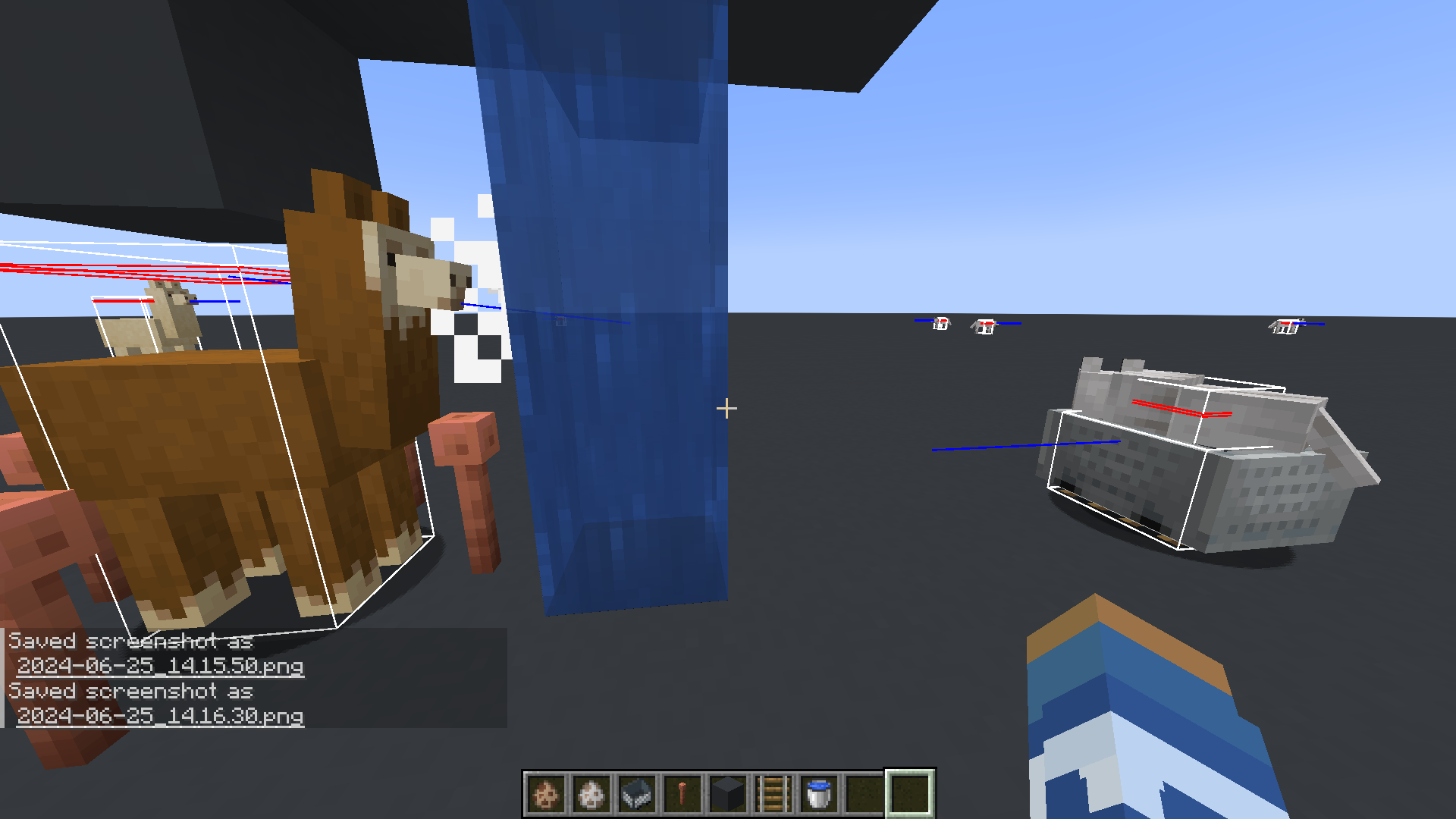 3. Put water imbetween. Turn on f3+b so you can see the actual llama spit entity through the particles.