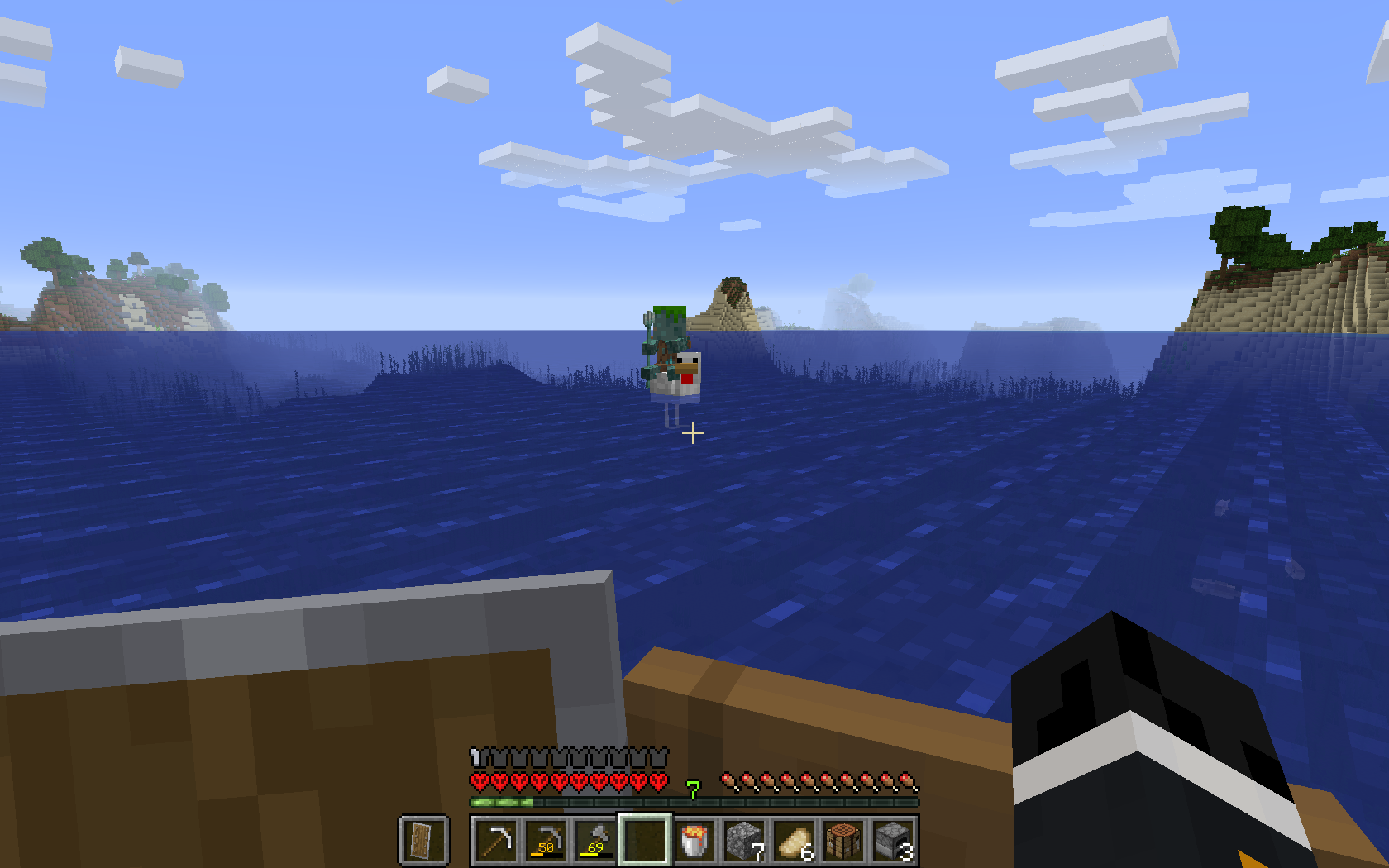 I actually saw the chicken force the Drowned to rise to the surface, since chickens float in water.