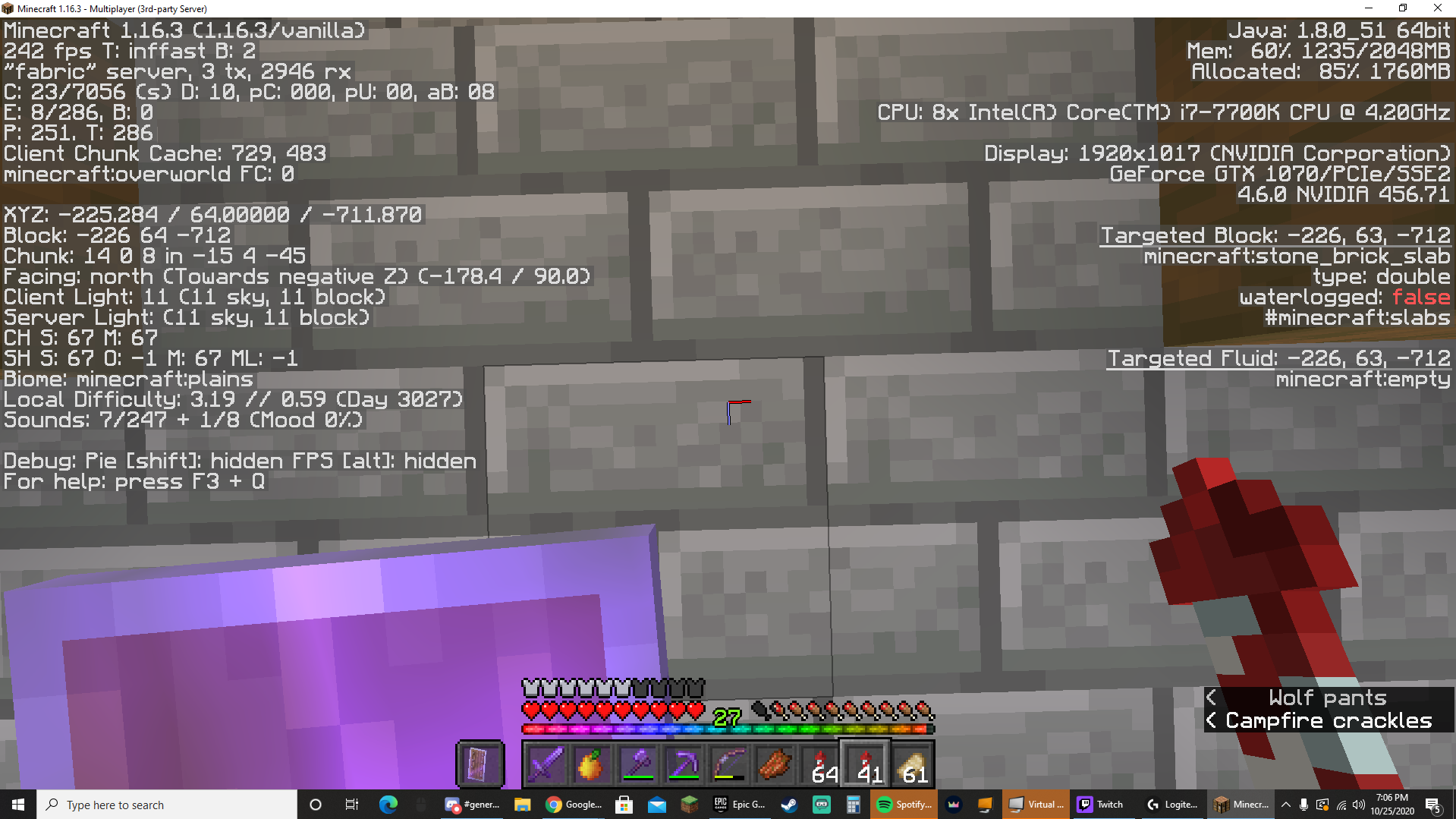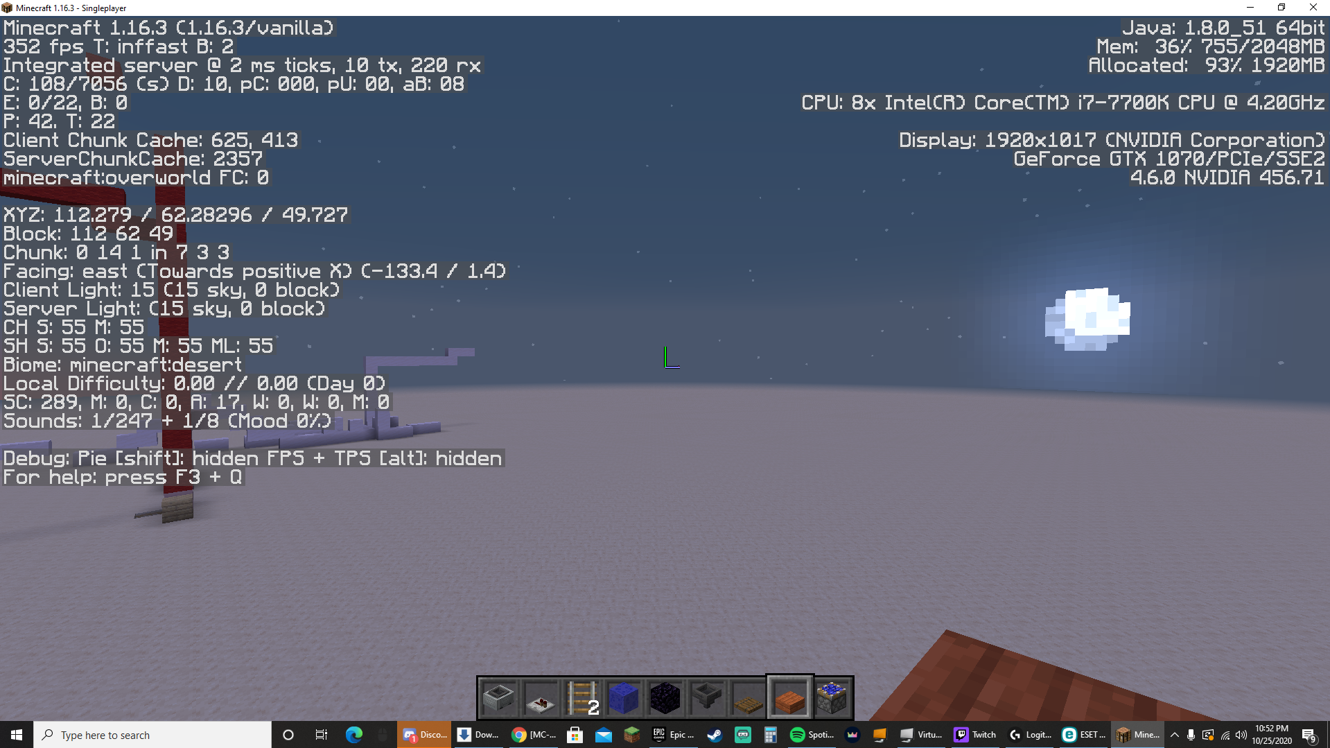 I added a new screen shot. It happened again on a single player world on vanilla Minecraft 1.16.3, no mods.