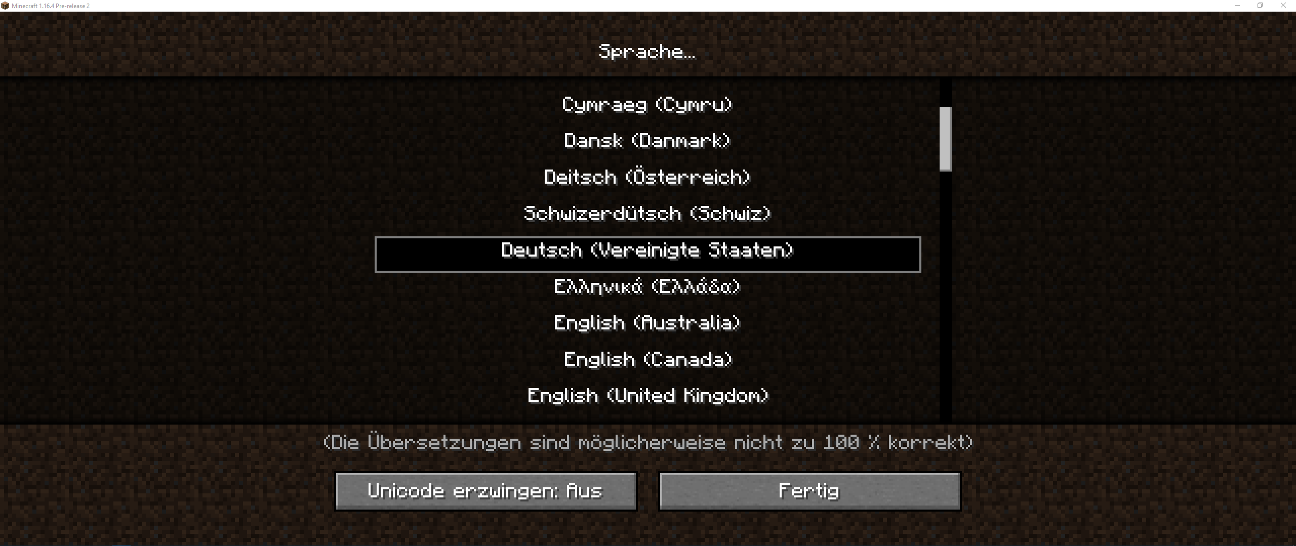 Language selection: "Deutsch (Vereinigte Staaten)"