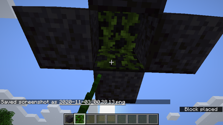 When a vine is placed directly on the underside of a block, its texture will be oriented to the north. However, placing additional vines in the same block space as it will cause the ceiling vine to rotate, which seems a bit odd.