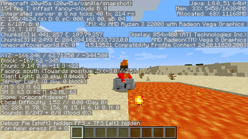 Happend:Player recive lava damage/catches on fire