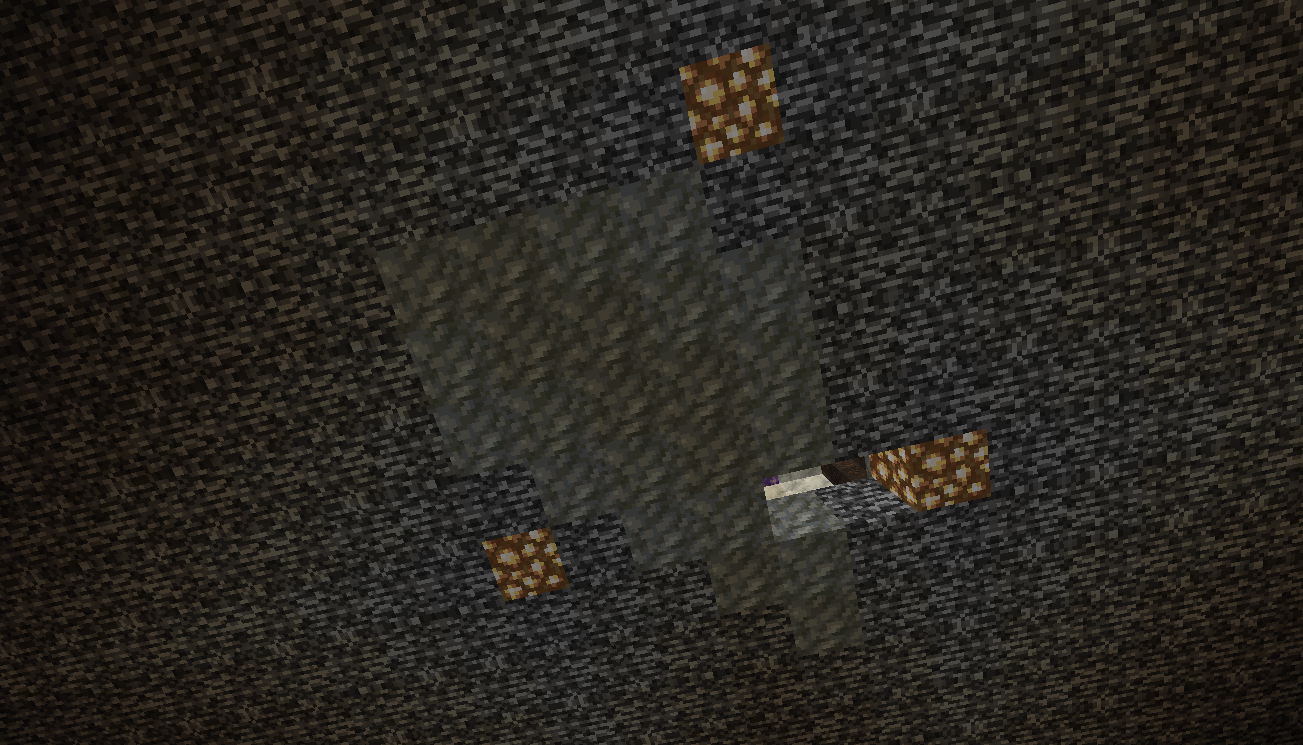 The second screenshot shows that I've dug out a little area underneath the geode to show bedrock being overriden by the geode blocks.