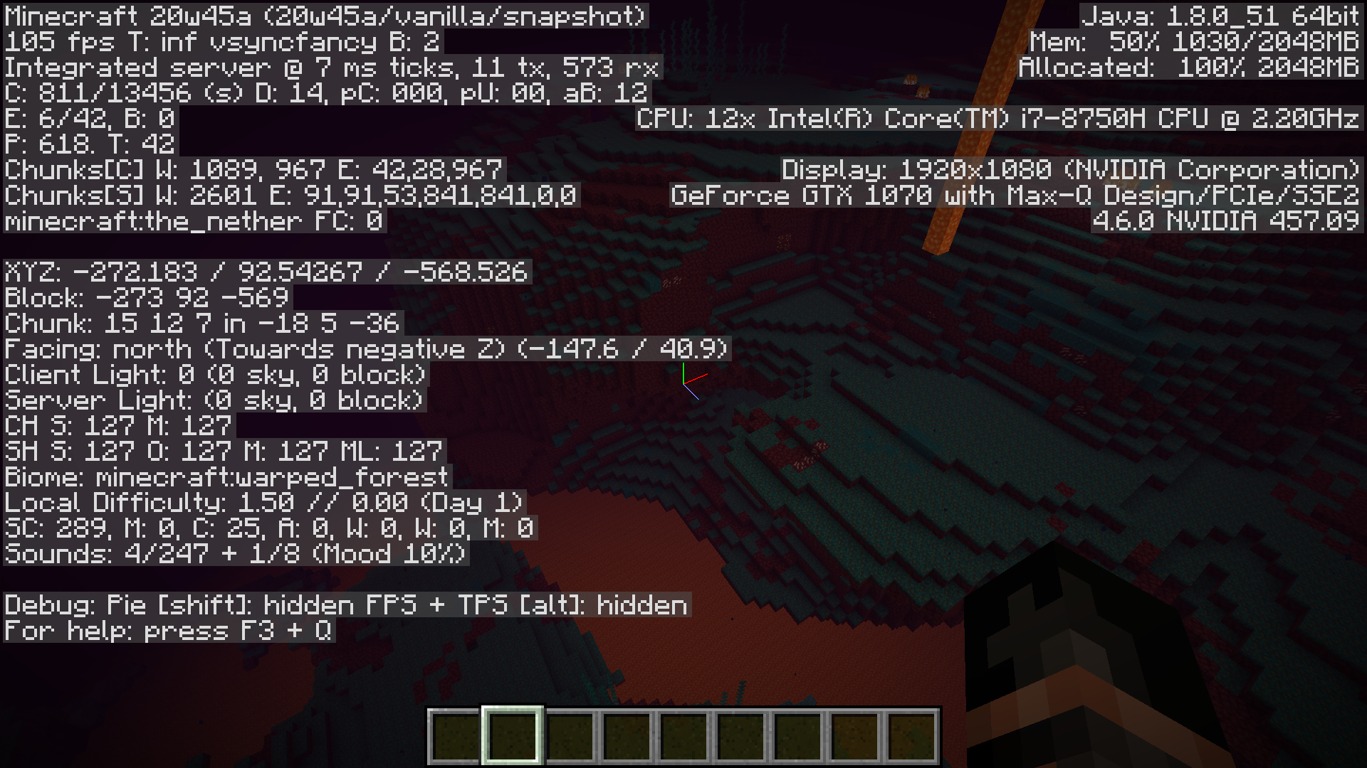 In both the warped forest and crimson forest biomes in the nether the large fungi structures don't generate, and neither do the ground foliage (roots and sprouts, vines still generate). I checked this on a second seed as well to make sure that it wasn't just a strange one-off occurence.