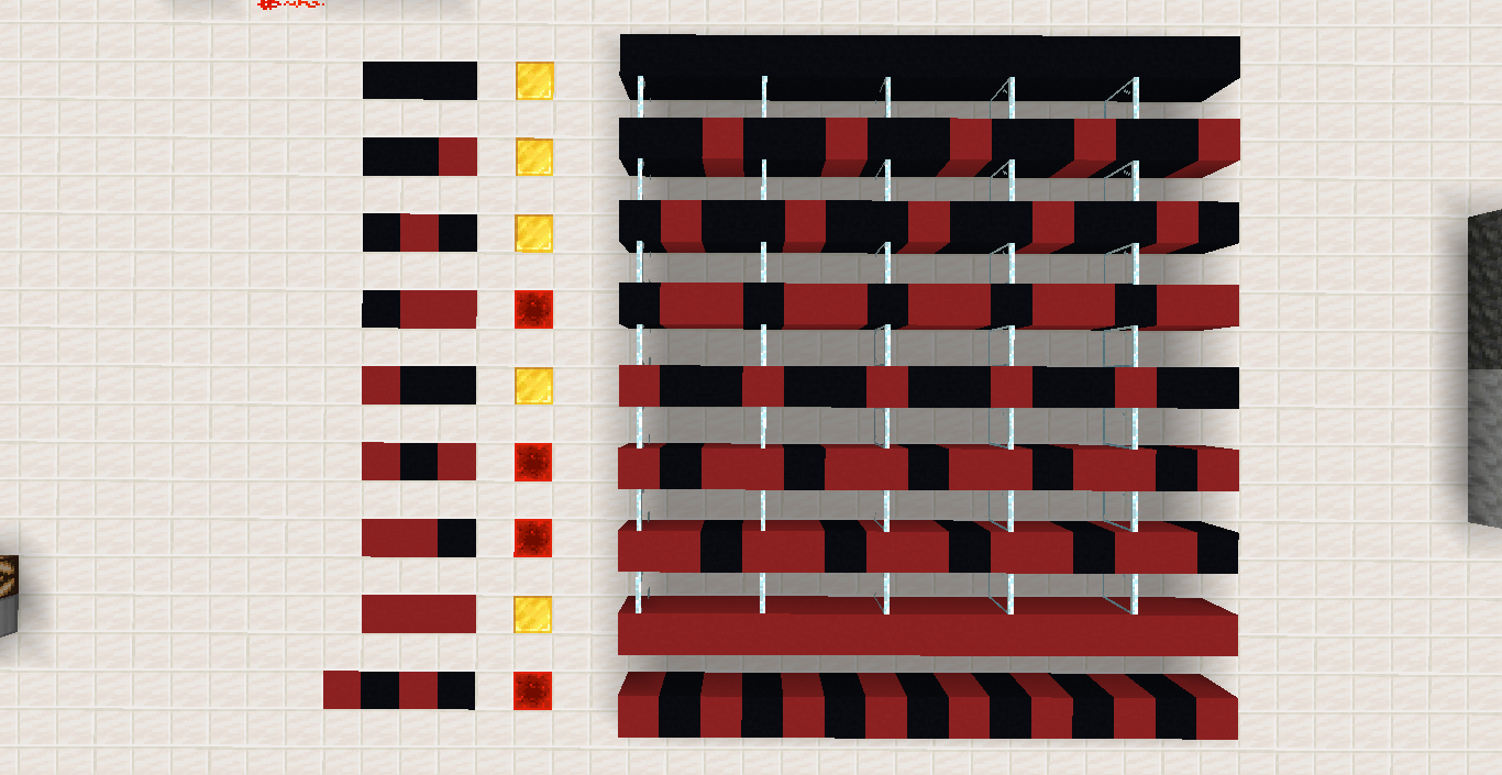 2) input this sequence into the rightmost (rightmost if you build the circuit as i did) 3 repeaters: on-off-on.