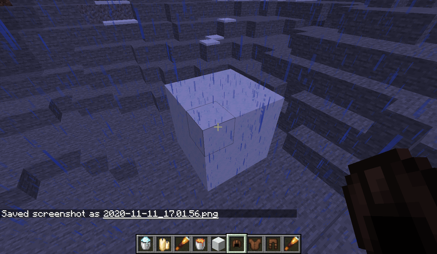 This is also a vanilla parity issue, as in bedrock the rain does not pass inside the snow.