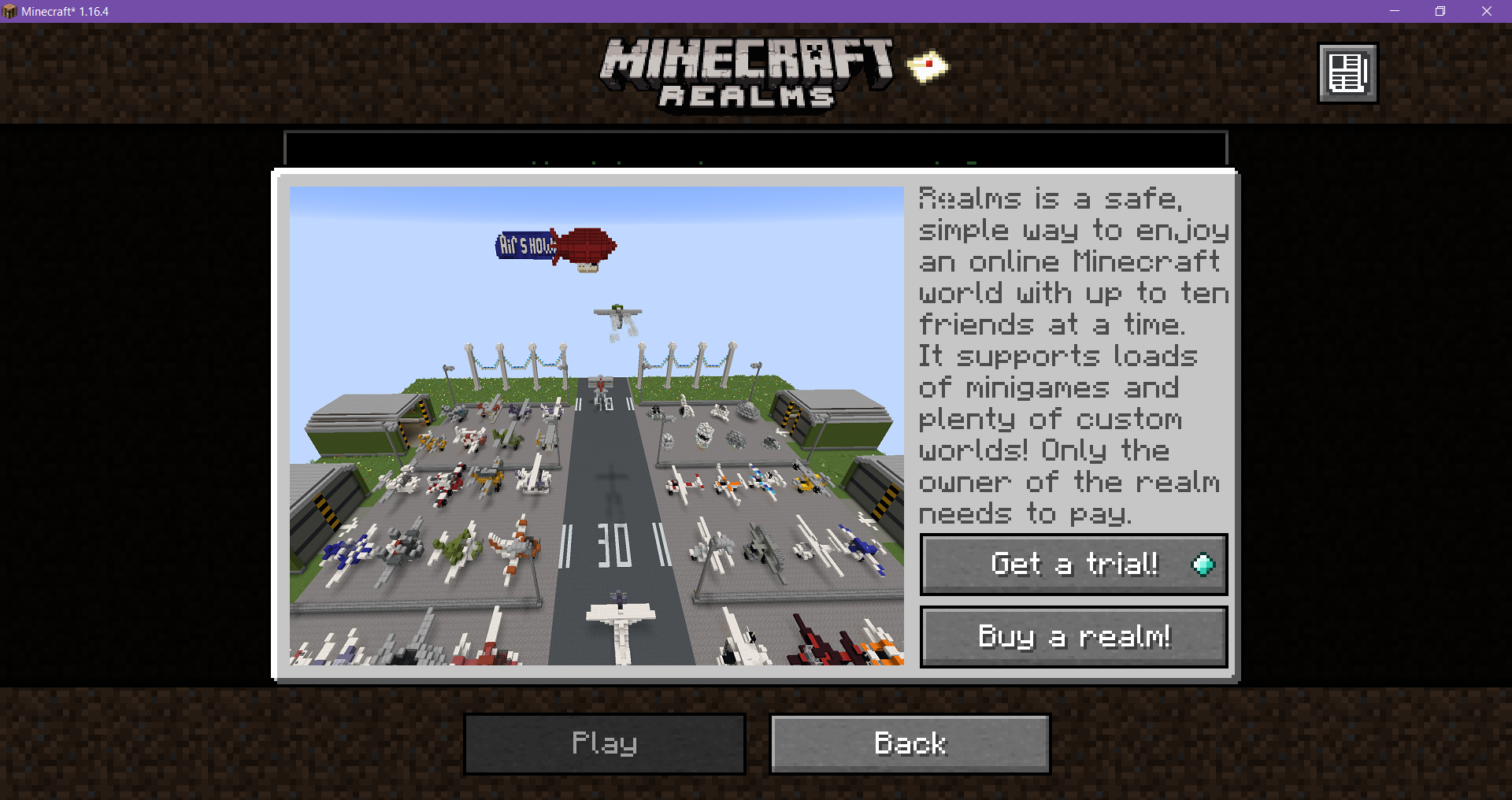 In the game menu, when I click the Minecraft Realms button I get a pop up sign that ses "Realms is a safe...". I can se my friends realm behind the pop up but cant access it. The only way I can access the realm is if the owner kicks me and then invites me again, the only thing is that the next day the pop up window is back again. I can't get the pop up window away so that I can access the realm.