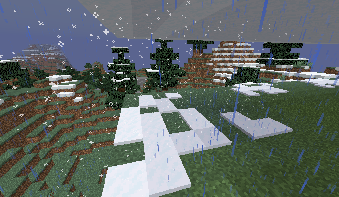When it rains or snows on powder snow, it will appear and sound like it's passing through the block, but won't actually. For example, you can't use a riptide trident when it's raining under powder snow, despite rain being present. However, snow will still accumulate on blocks below powder snow.