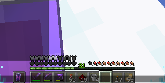I'm not sure if there's specific conditions to trigger this, but when I walk into powdered snow, I don't get the intended blue hearts in my hotbar area. Instead it appears as if I have none.