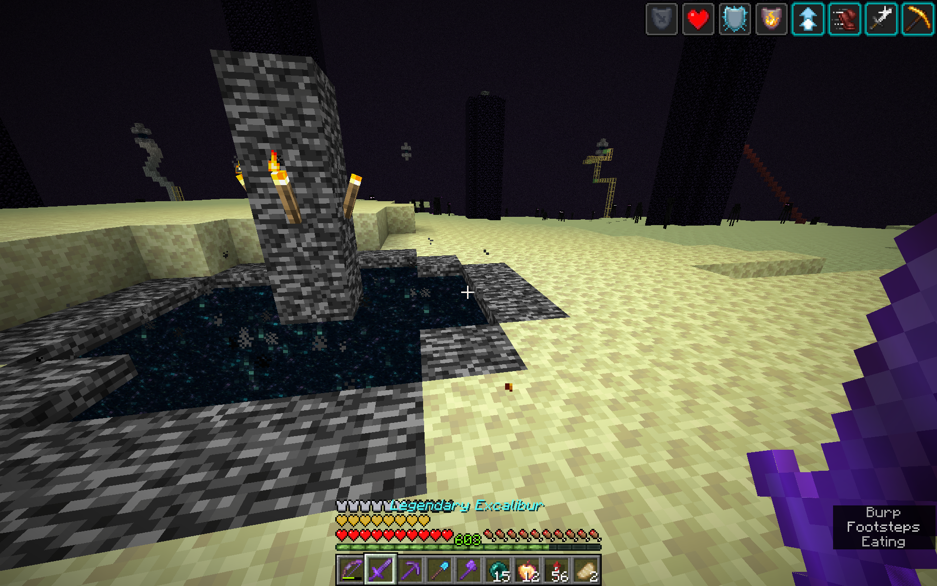 After eating an enchanted golden apple and leaving the End through the exit end portal, all player effects disappear. This is not exclusive to the enchanted golden apple, it happens to all effects the player has at the time of leaving the End.