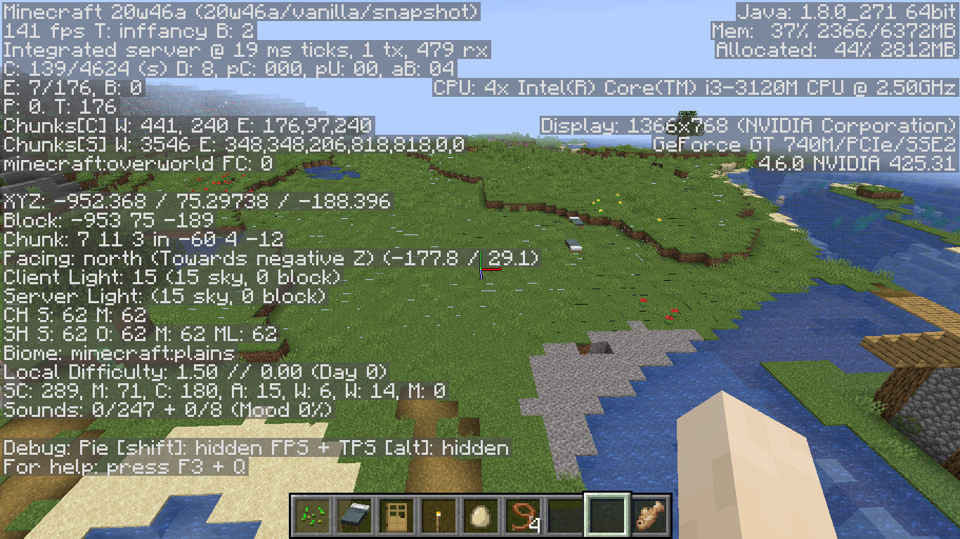 I have new snapshots of the 20w46a bug. I create a world, go into it and see that between the textures of the blocks there are some white or black lines.