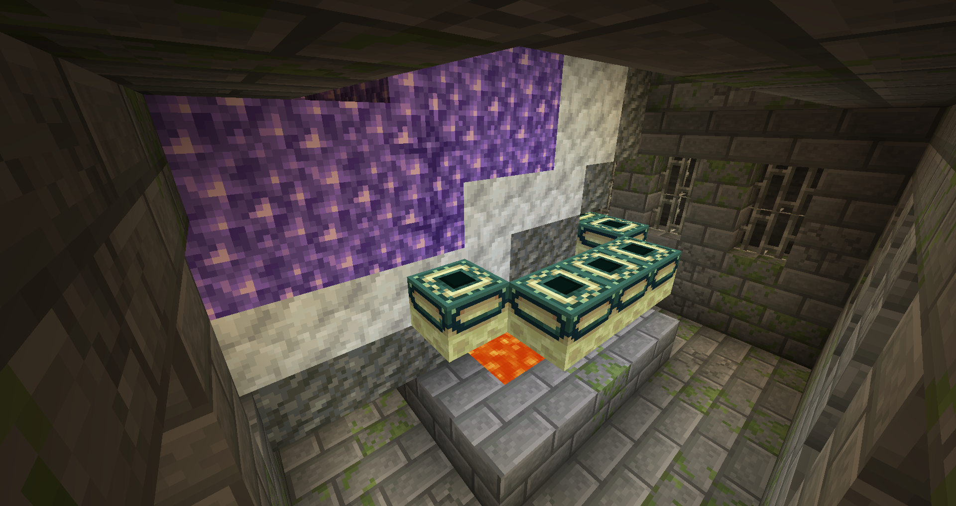I was playing creative mode on a new world in the snapshot and wanted to go to the end for the shulkers, however some of the end portal frames were missing because an amethyst geode was overriding them.
