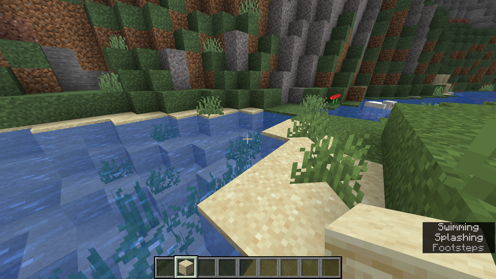 Grass, and other blocks such as flowers can generate where they shouldn't be able to, such as on sand or in the air above ponds.