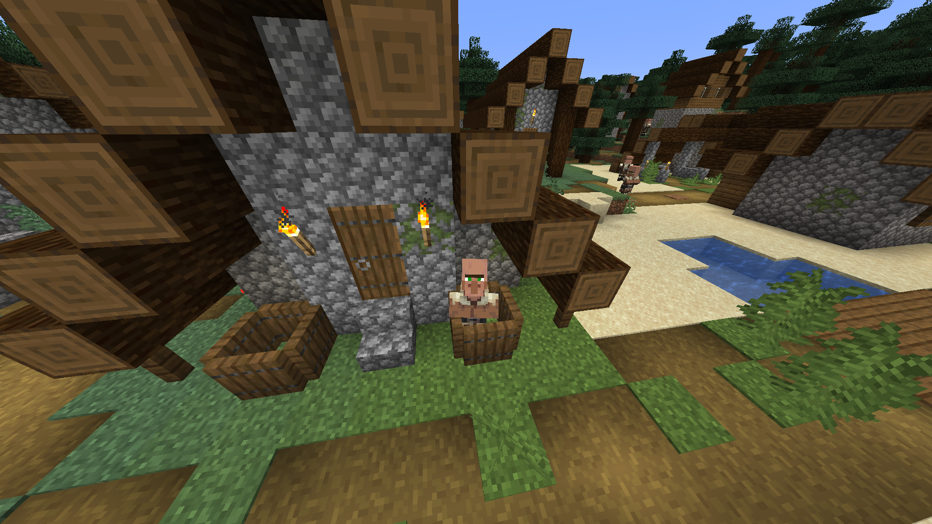 The taiga_decoration_1 had until 19w02a. The problem is that these water troughs are empty and it traps mobs (mainly villagers). This is the last possible chance to fix it.