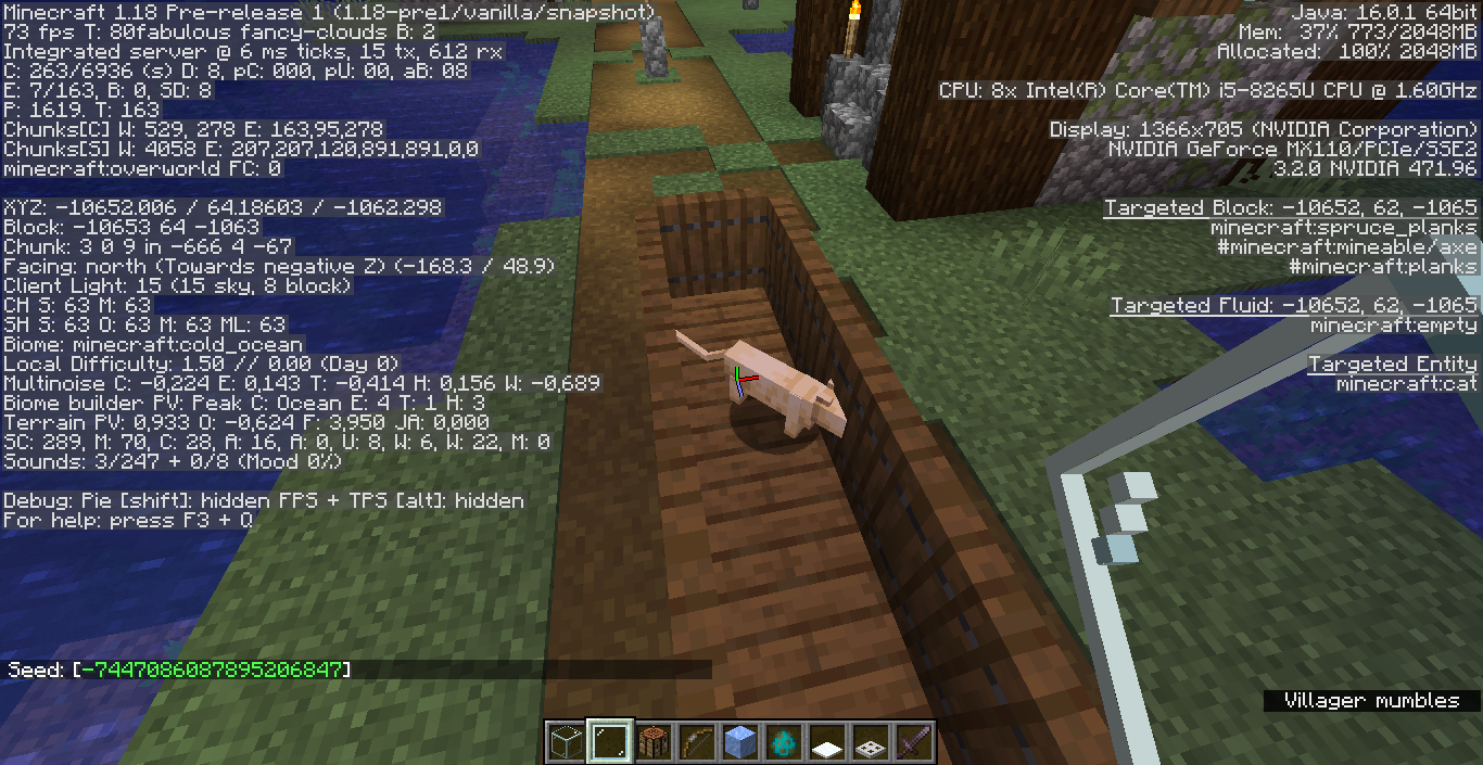 (structure_name)with the name of the affected structures:/setblock ~ ~ ~ structure_block{mode:"LOAD", name:"minecraft:village/taiga/houses/(structure_name)",showboundingbox:1}For example: