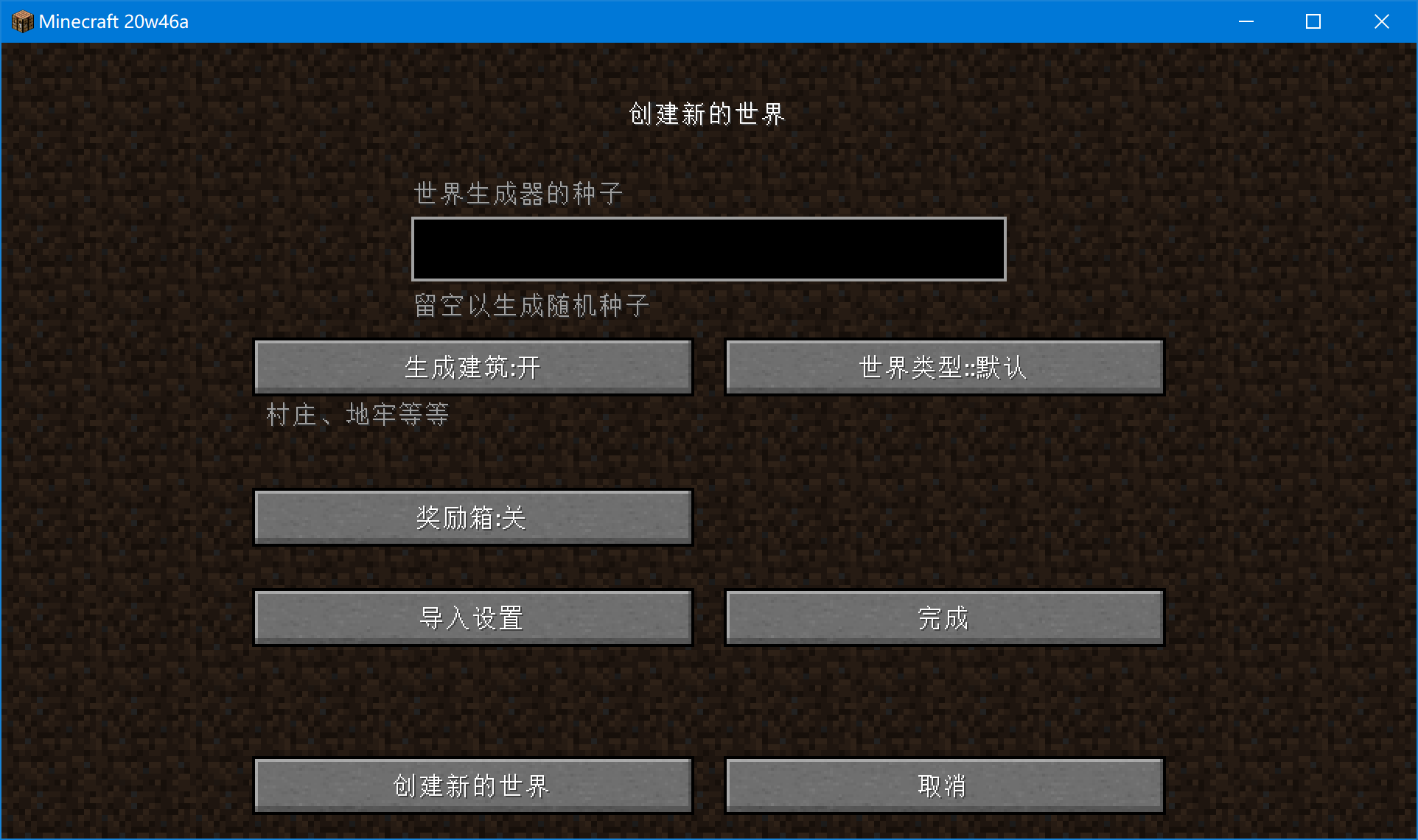 A colon has been added to the "World Type" option when creating worlds.