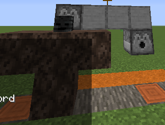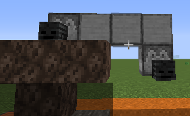 ❌ Dispenser put the wither skull in the air, which isn't normally possible at all: