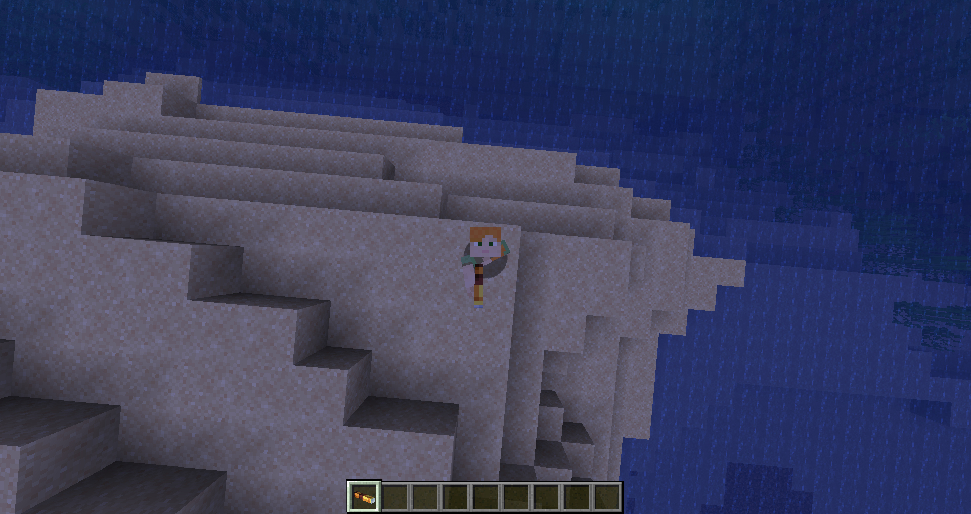When a person just stands and looks through the spyglass, if you look up from the 3rd person in front, the animation of the pipe breaks.