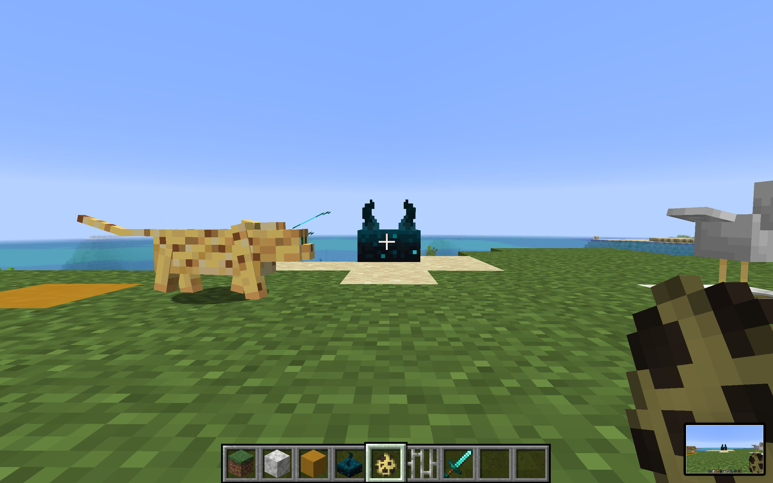 Players can sneak to avoid emitting vibrations when walking, but ocelots and cats will still be detected by sculk sensors. The ocelot/cat is spawned on the left to sneak towards its NoAI victim on the right, and it makes vibrations while it sneaks.