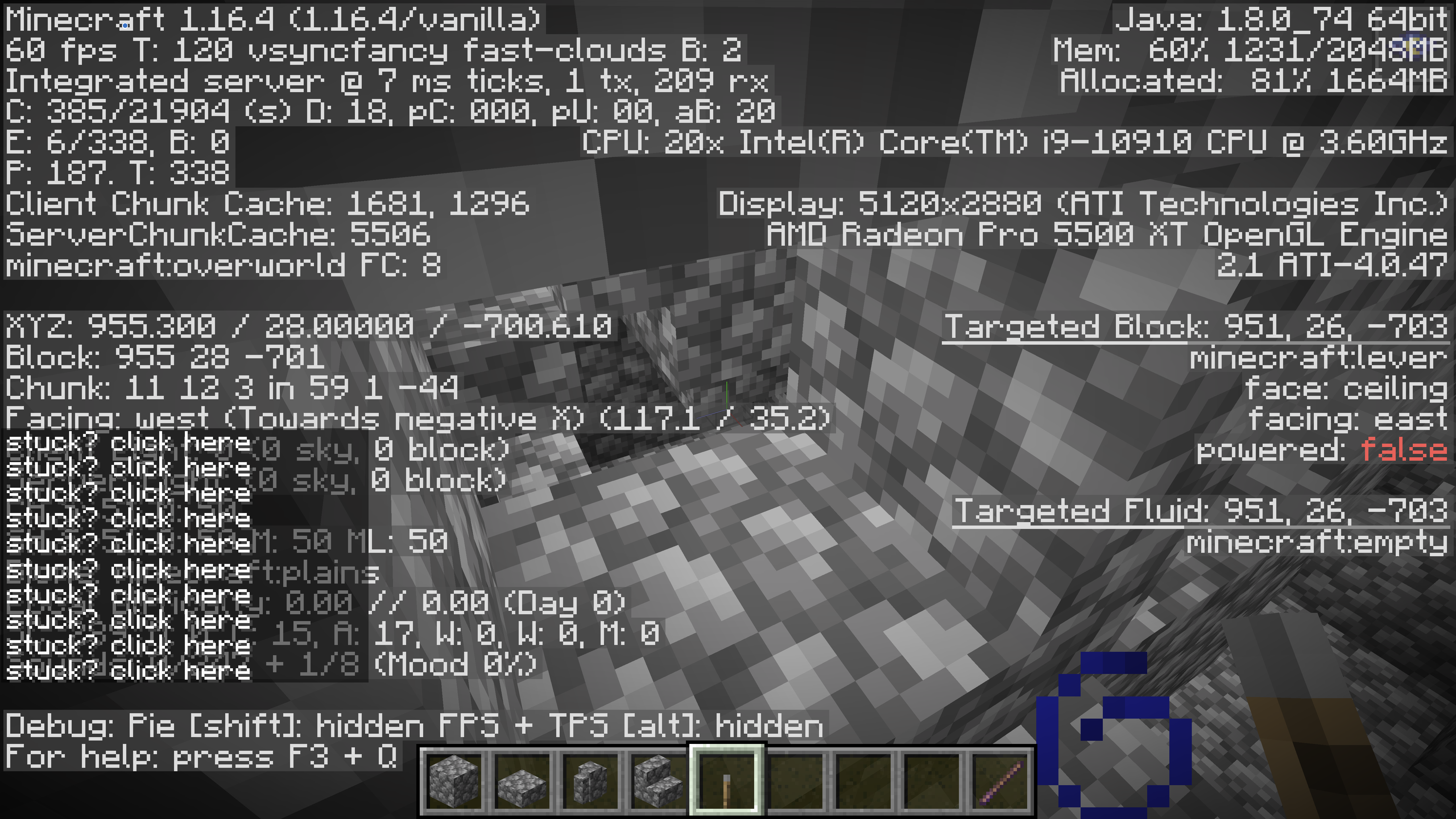 clicking lever is different in creative than in adventure mode