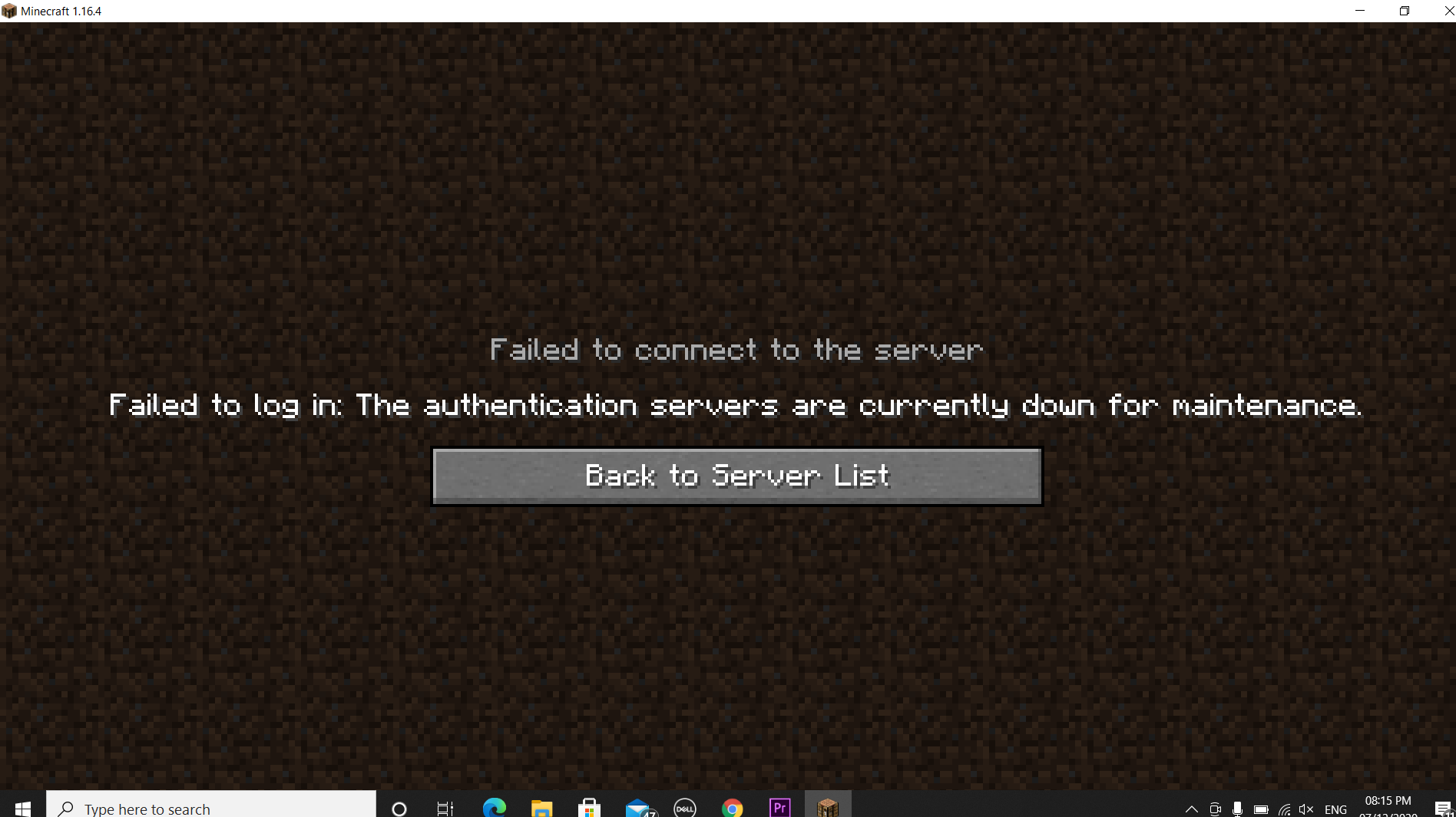 SERVERS - I can't join any multiplayer server. When I try, it shows the error message 'failed to log in: the authentication servers are currently down for maintenance.'