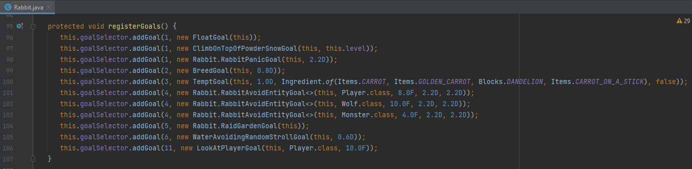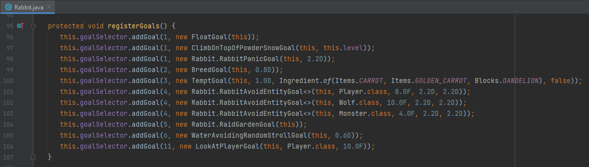 Rabbits don't follow players holding carrots on sticks. This is inconsistent with the behavior of pigs, who do follow players holding carrots on sticks.