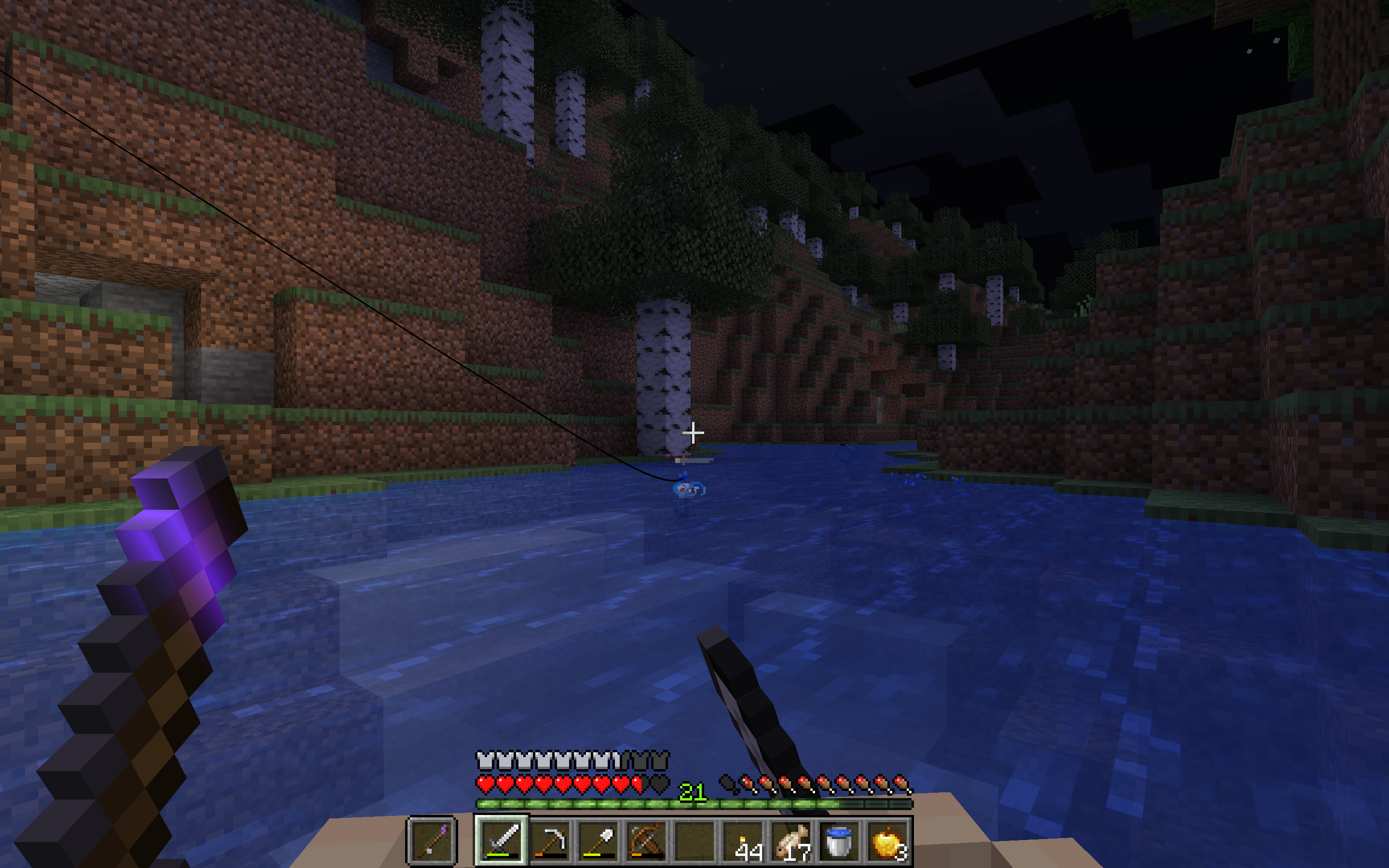 Put a fishing rod into your offhand