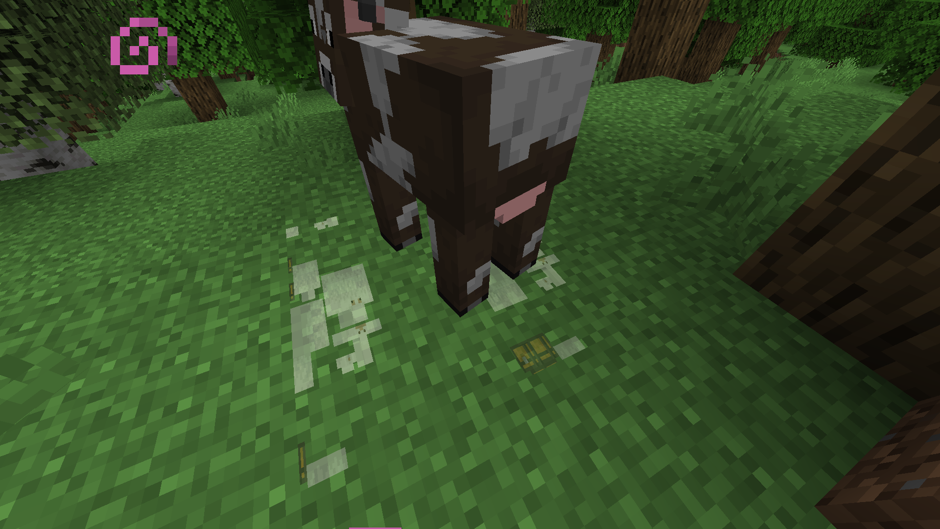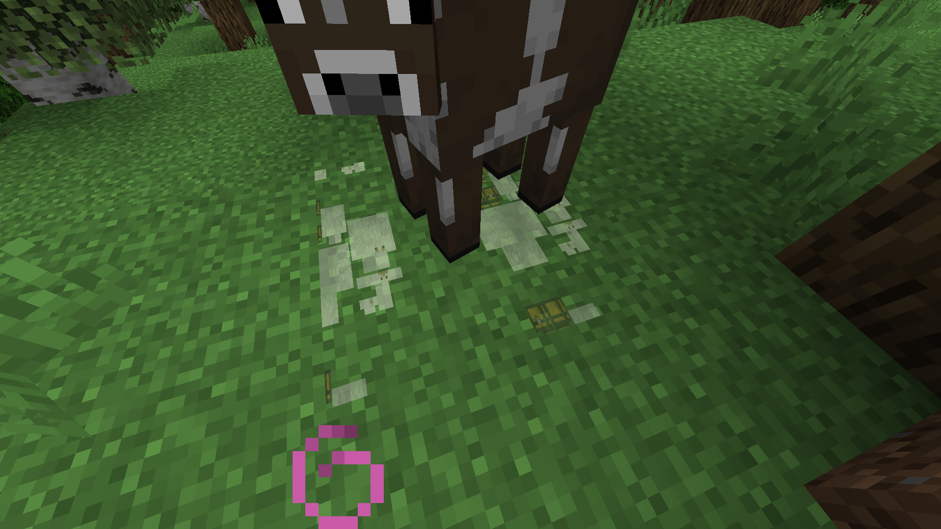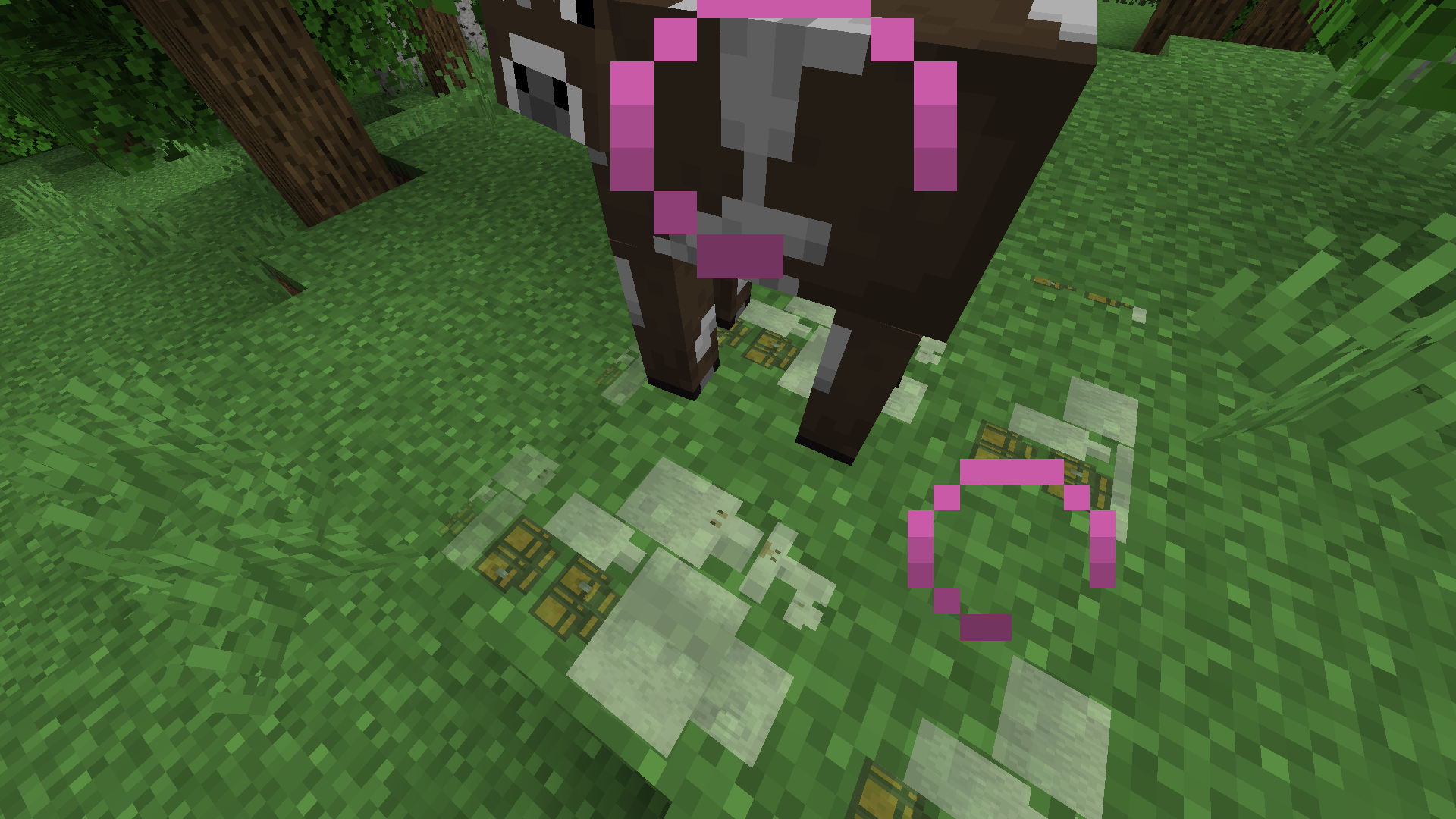 I found a cow and below her it had what seems to be a chest and a rabbit texture like a paper sheet underneath, I tried to unmake it, so I reloaded the default texture pack, I was using a custom resource pack though, but a proper one anyway, note that the glitch had transparency