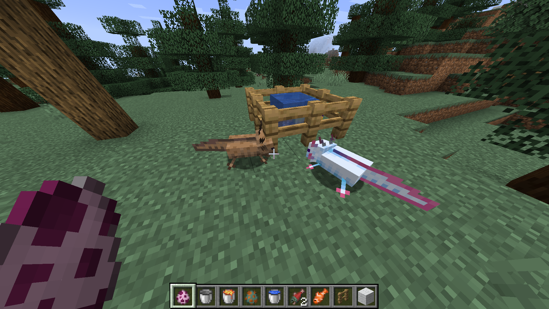 when i put water in the fence square, the axolotls are trying to go behind the fence but they cant jump over the fence, so they are stuck