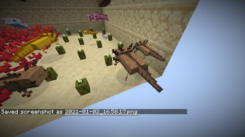 Axolotls frequently get stuck inside of waterlogged blocks like coral or sea pickles. It seems like they have the same speed as on land when inside of such a block.