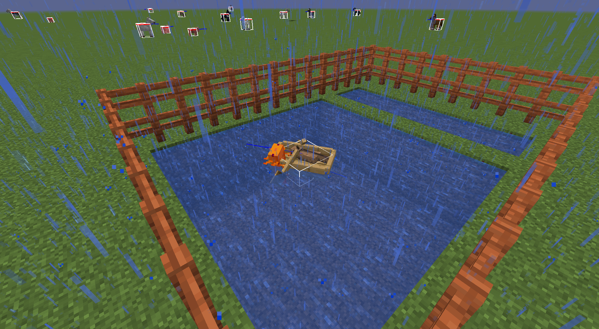 Summon an axolotl in a boat that is on water and make sure it's still raining.