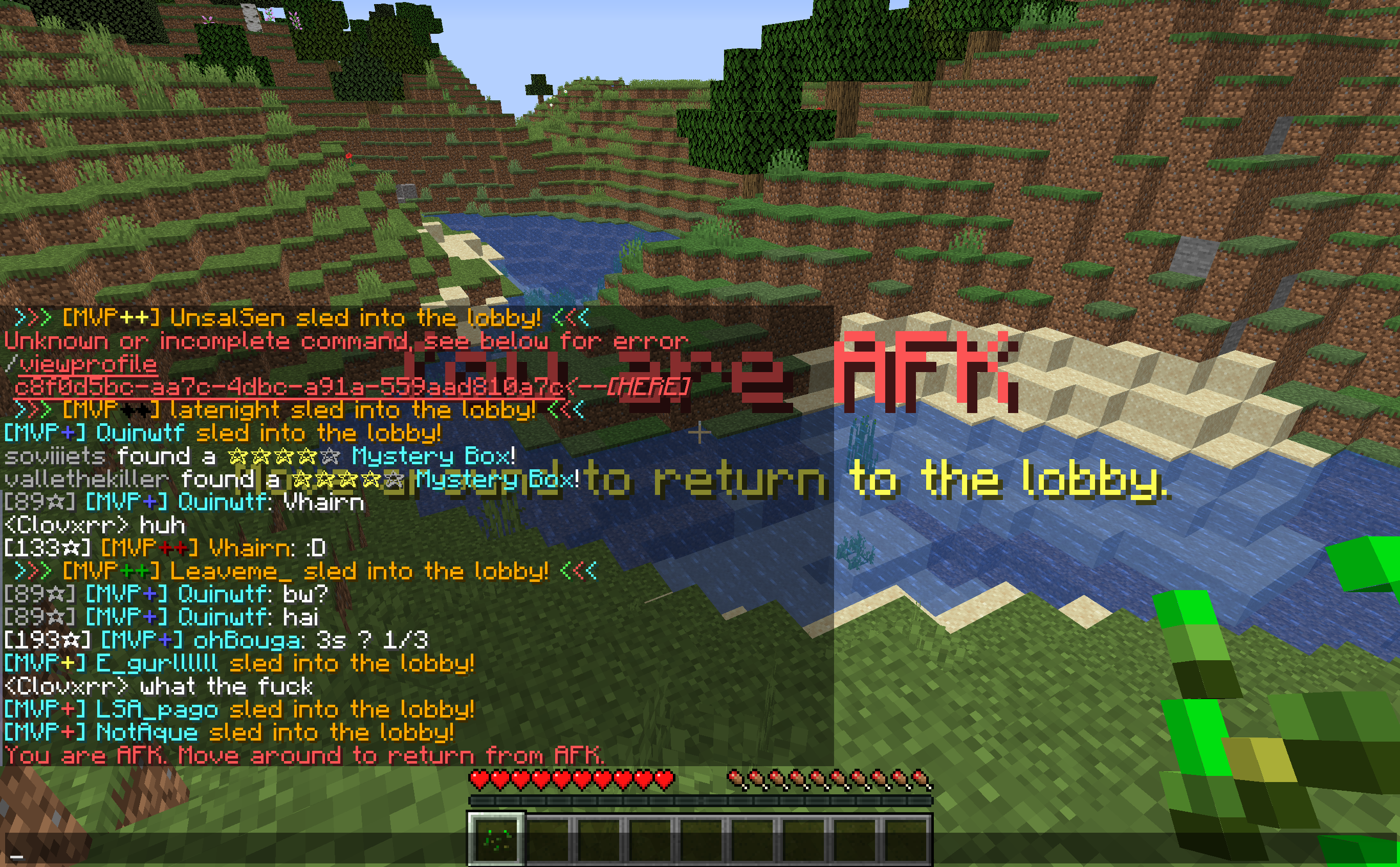 i opened up my game and went to go to play on the server hypixel put of instinct of doing it so many times, i stopped myself last second as i was joining the server to play a new singleplayer world. i made the world and waited for it to be created and to my surprise i was in hypixel somehow(except no chunks of the actual world were loading only the items i should have and the player list in the TAB menu), i went to leave the server and was instead show save and exit to title and i went ahead and did so but when i joined back the world loaded normally (besides the day and night cycle flashing back and forth to day and either sunset or sunrise) but the chat messages rolled in as if i were on the server still somehow. i took a screenshot (attachment shown) and when i got back from saving the screenshot even the afk settings worked and it attempted to put me in the afk server but instead just put me at the spawn of my minecraft world without the rapid day change and the message permanently on screen that i was afk (other atattched image) this was shown by the fact that i once again saved left and rejoined to check if it would disappear or not.