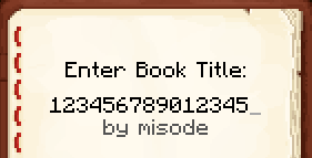 I suggest that if fixed the limit should be raised to the same limit of item names (50), because there is no reason as to why a book title should be shorter than if you just renamed the item in an anvil