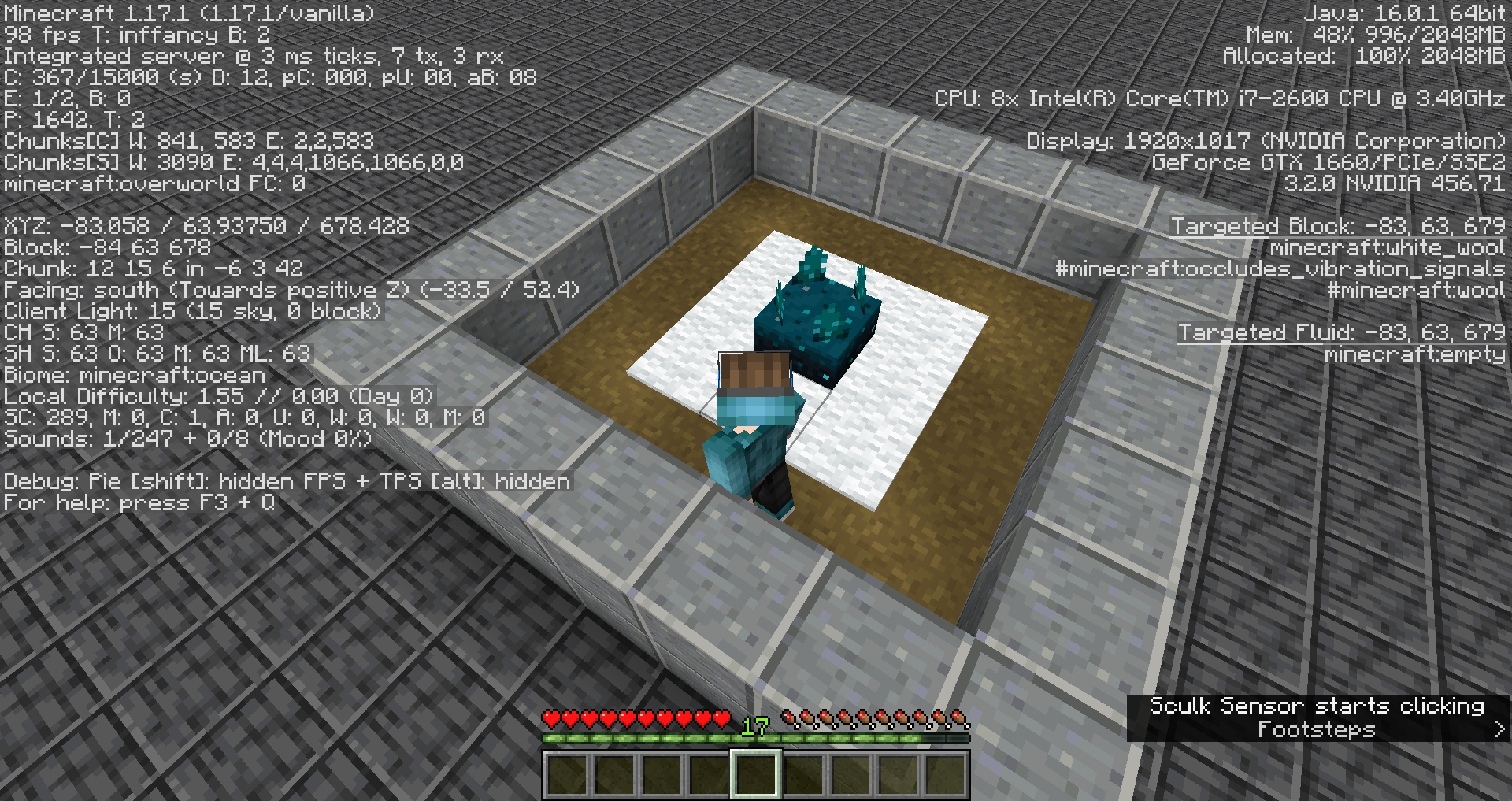 → ✔ Notice how the sculk sensor doesn't activate.