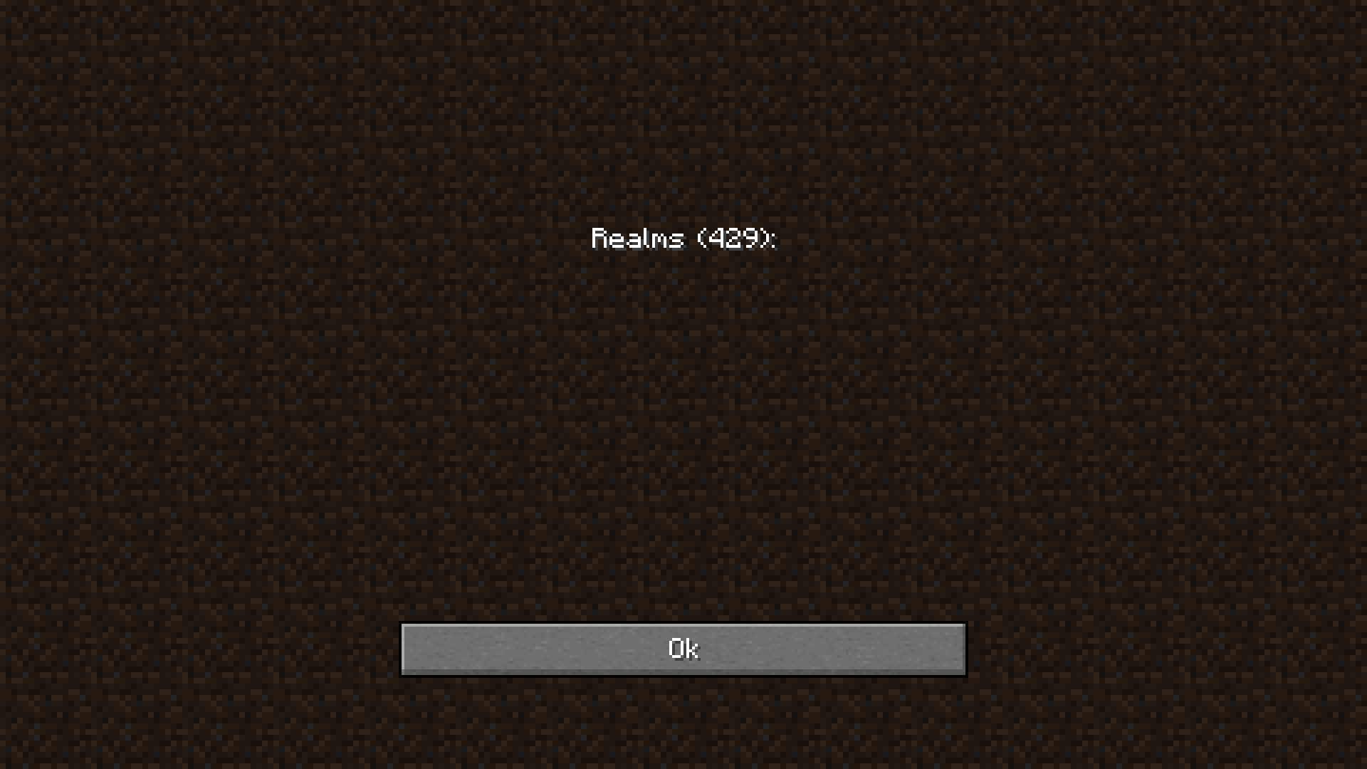 Upon clicking the button labeled "Minecraft Realms" on the title screen, I am presented with a screen that simply reads "Minecraft (429)", with nothing else but a confirmation button. Upon pressing the button, I just get taken back to the title screen. The times that this happens are random, it'll break and then an hour later it works fine. I've made no modifications to my game recently, and this comes up out of seemingly nowhere. I've done the usual stuff to fix issues, such as restarting Minecraft and my PC, as well as turning off automatic Java updates to see if that does anything (it does nothing).