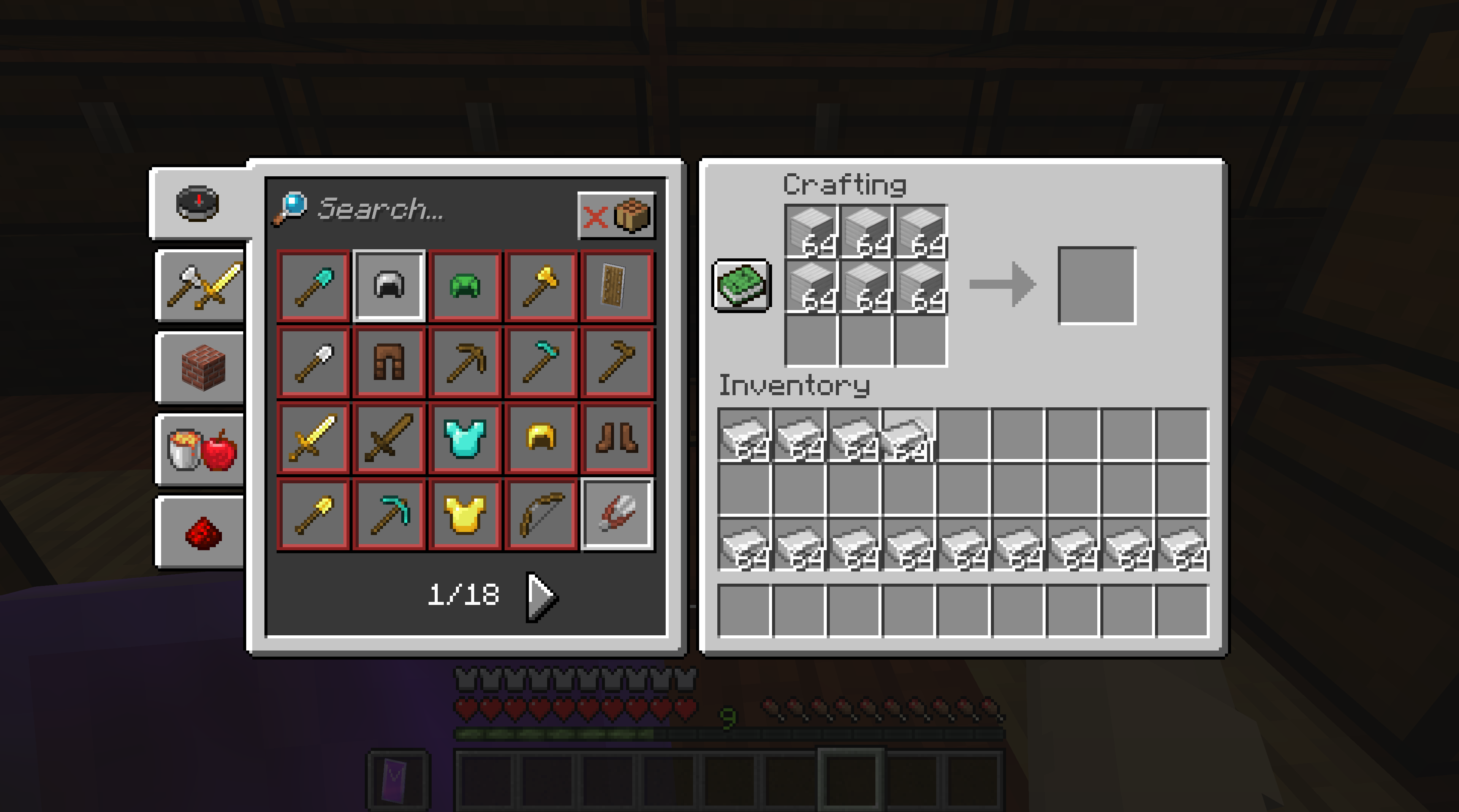 2) Click one stack of iron ingots, then shift+double-click another stack of iron ingots. Your inventory should fill with stacks of iron ingots.