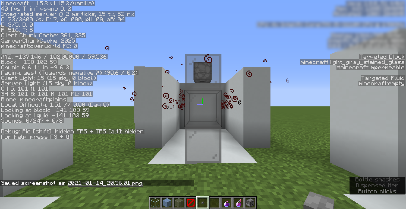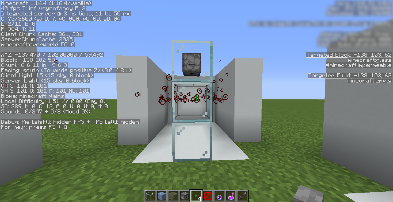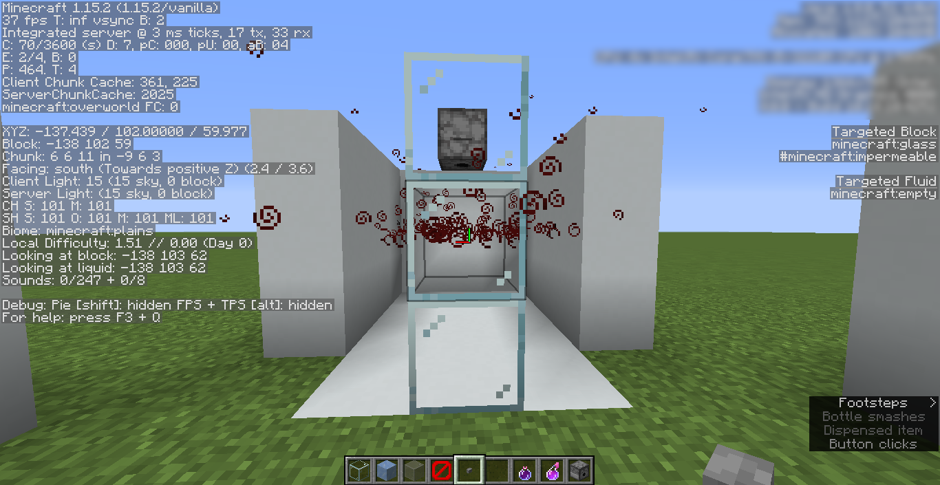 Therefore, blocks as ice or colored stained glass that have traslucent textures make all particles invisible while you are still able to see other blocks ot entities through them.
